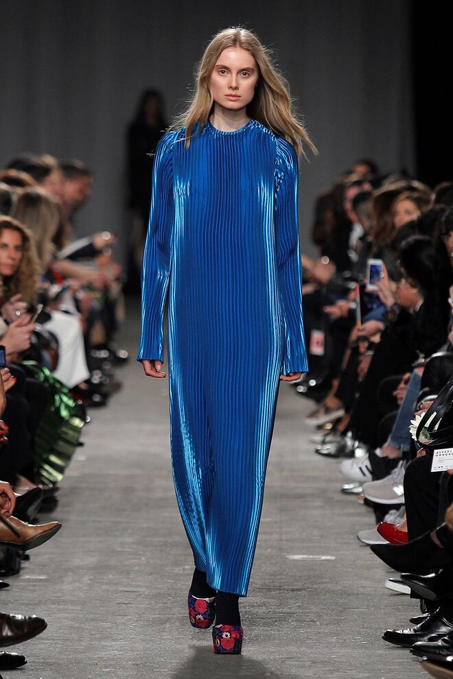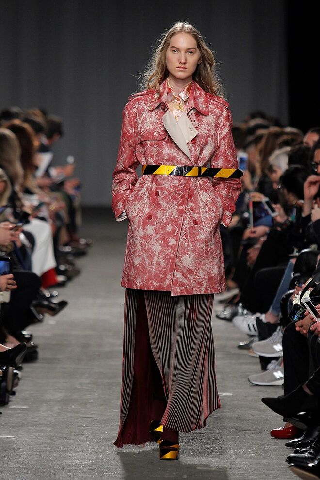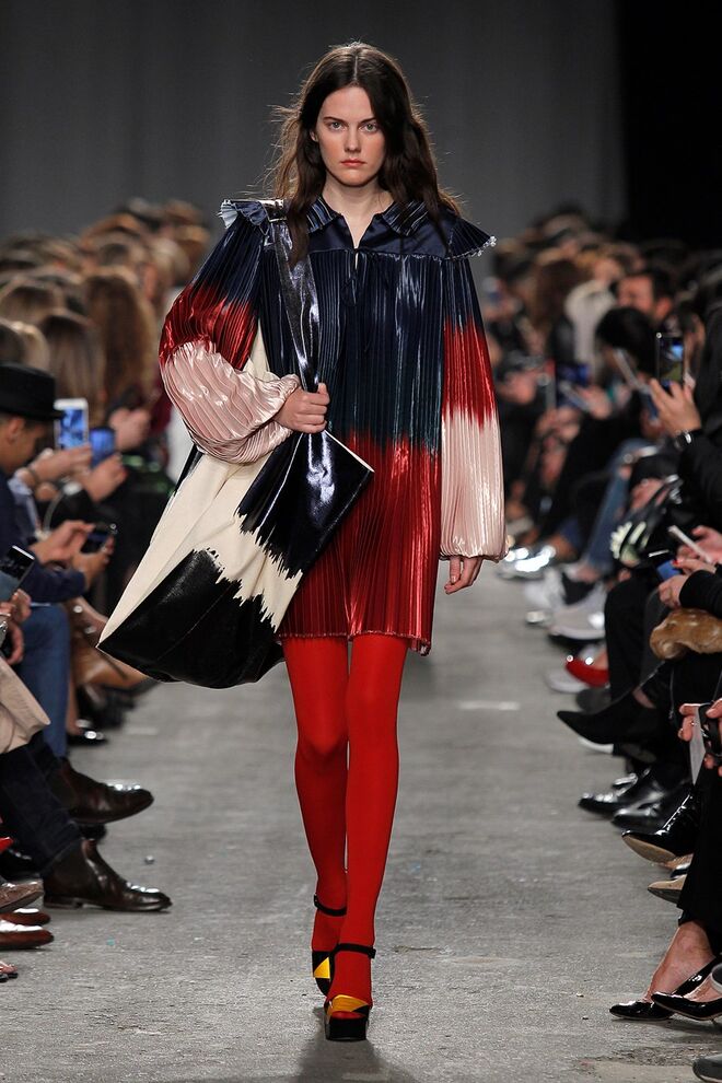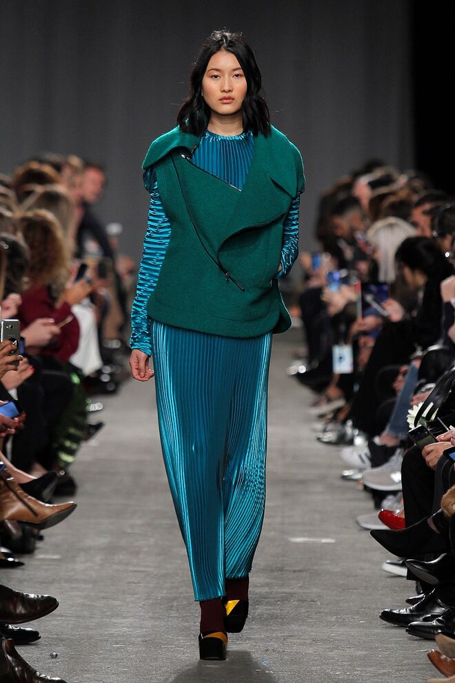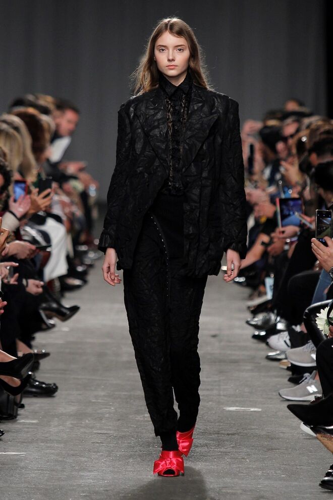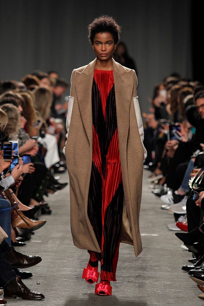 Os volumes apresentam-se amplos, de corte alfaiate, e combinam com a fluidez dos estampados e camisas amplas brancas. Os plissados também estiveram presentes e receberam acabamentos técnicos.