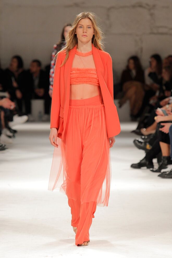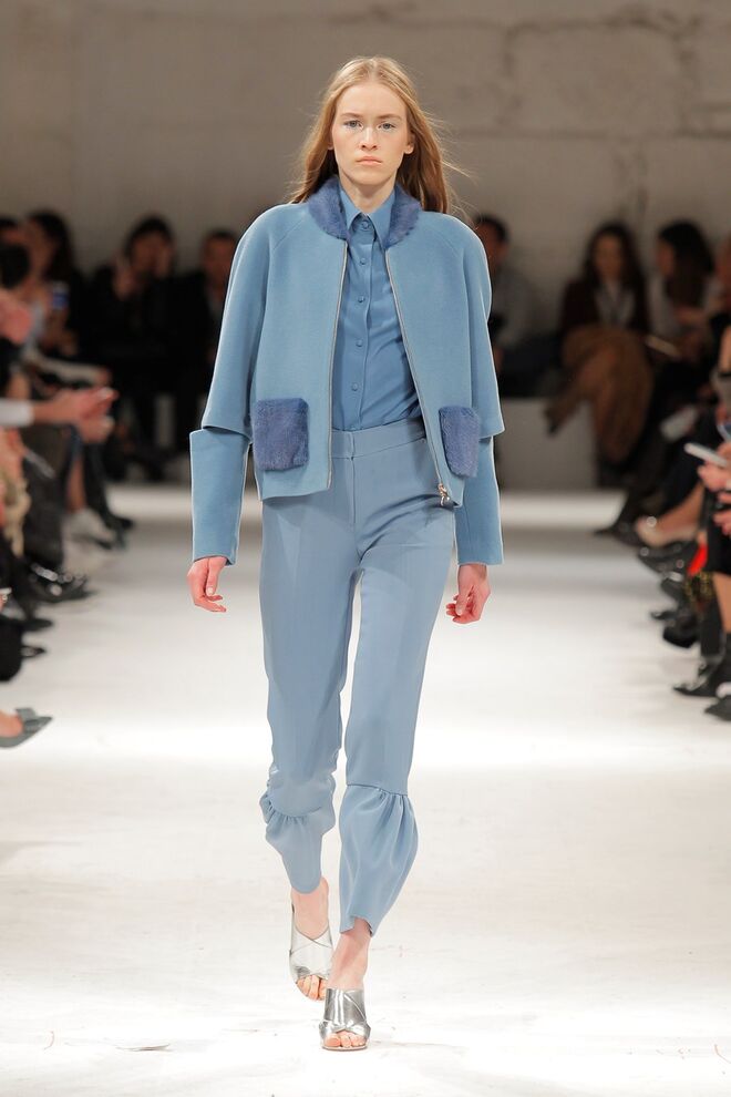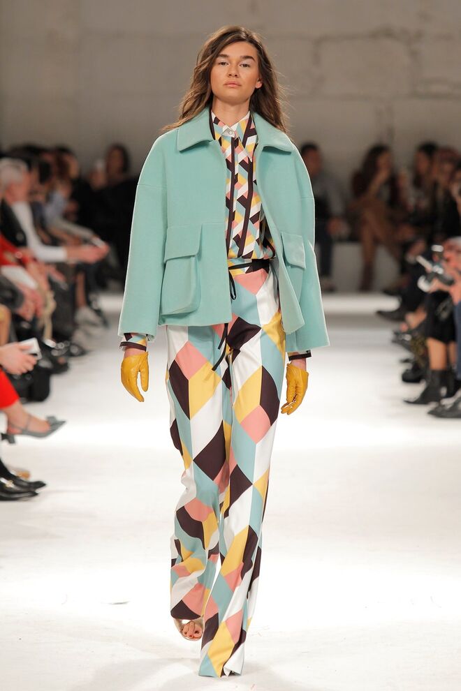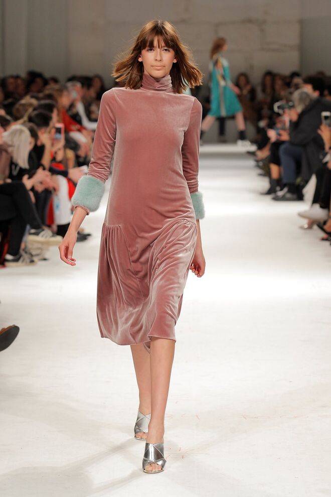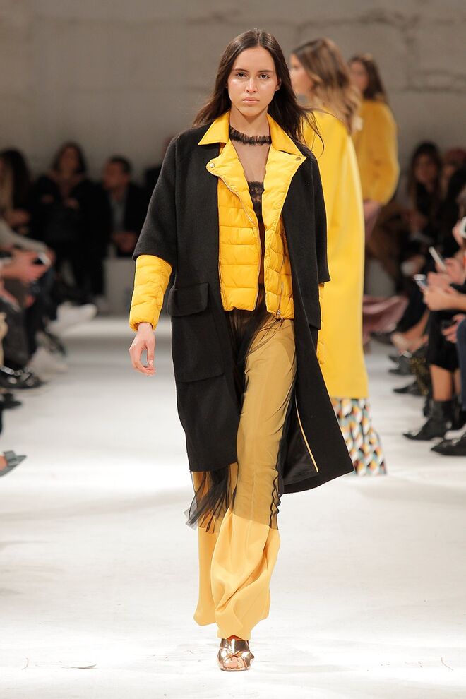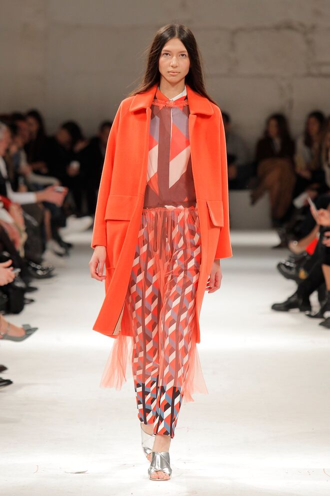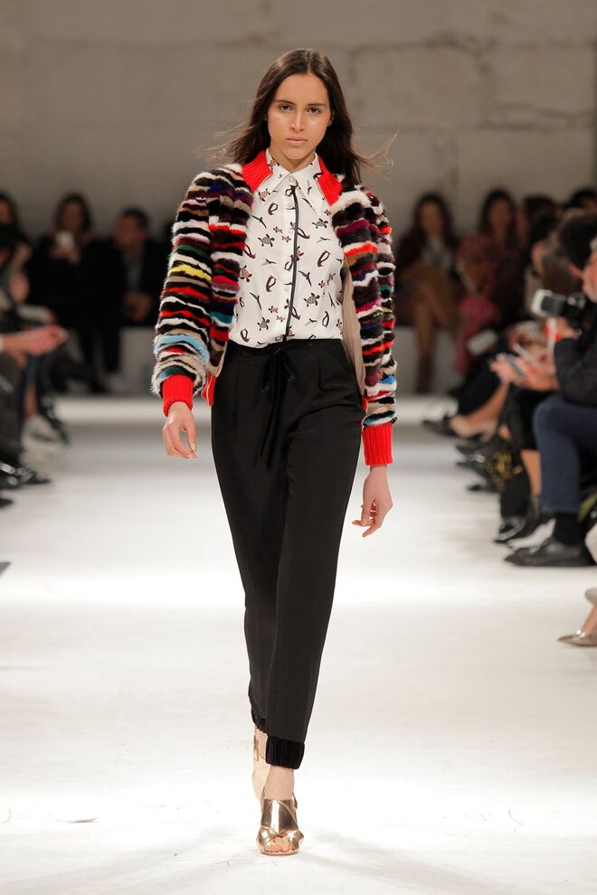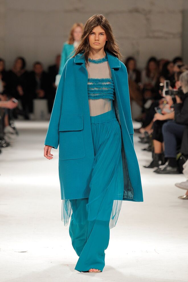 A paleta cromática revela cores tão distintas como rosa pó, amarelo olho de gato, verde água, azul crepúsculo, laranja queimado, coral e preto. Os materiais de destaque são os brocados, os veludos, os pelos volumosos, os tules delicados, os tecidos brilhantes e as caxemiras macias.