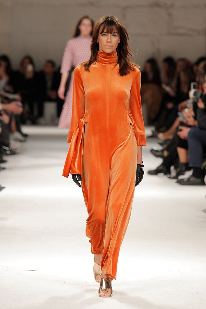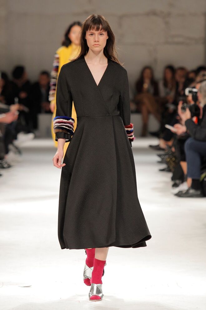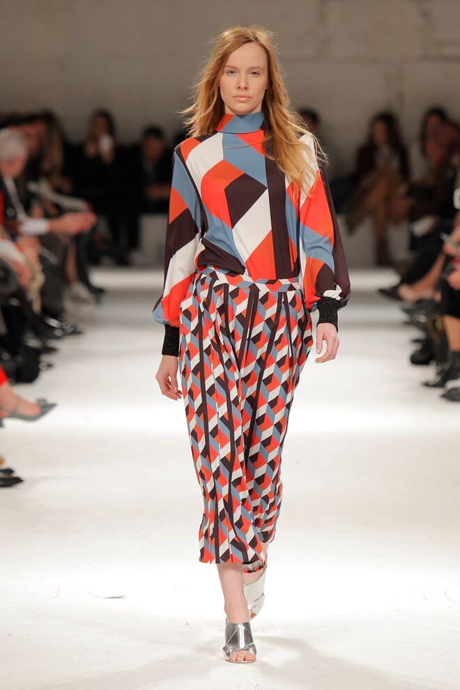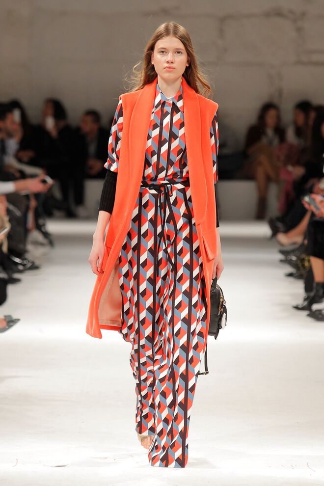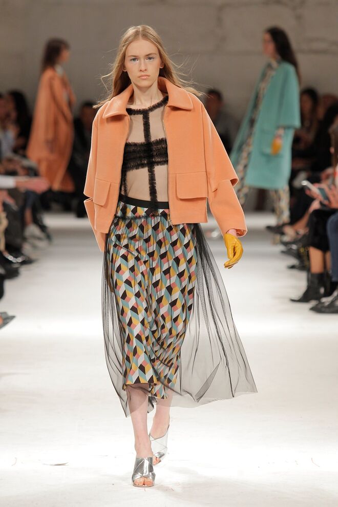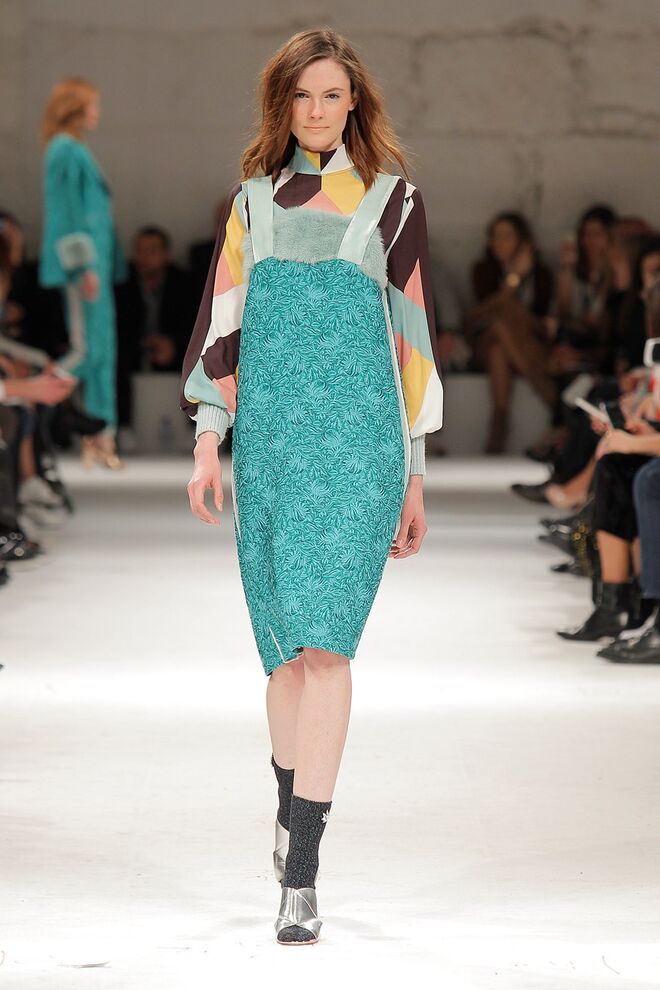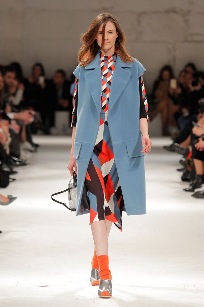 A paleta cromática revela cores tão distintas como rosa pó, amarelo olho de gato, verde água, azul crepúsculo, laranja queimado, coral e preto. Os materiais de destaque são os brocados, os veludos, os pelos volumosos, os tules delicados, os tecidos brilhantes e as caxemiras macias.