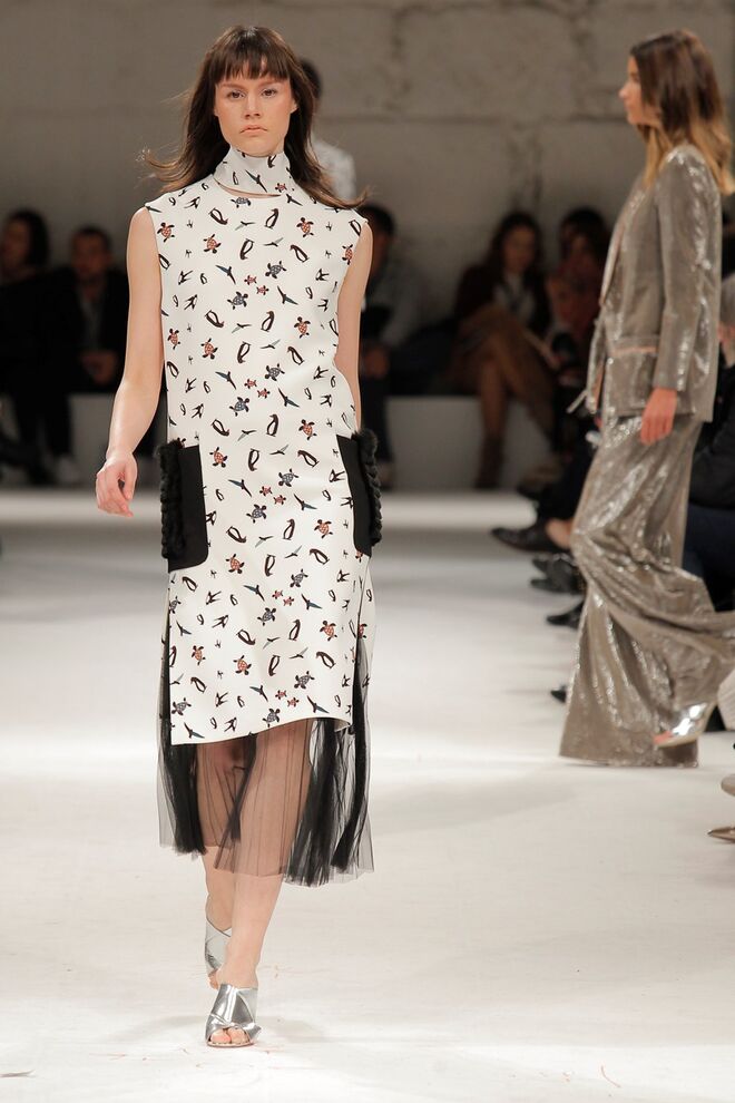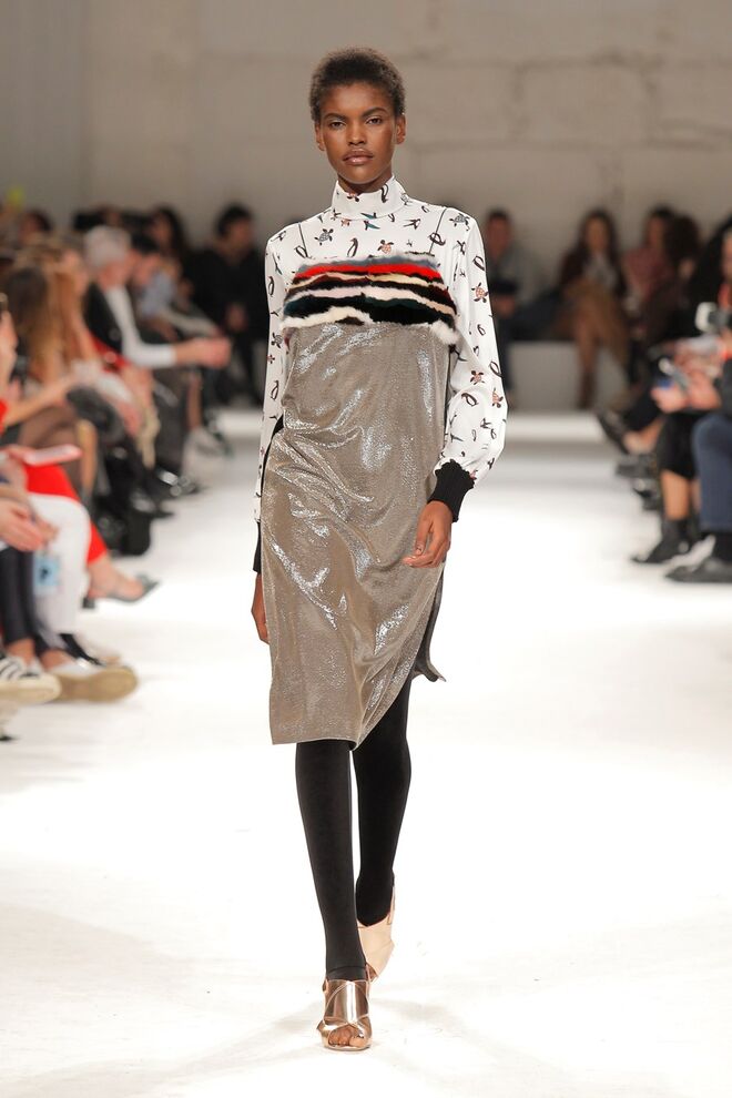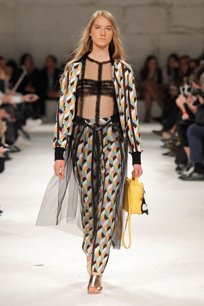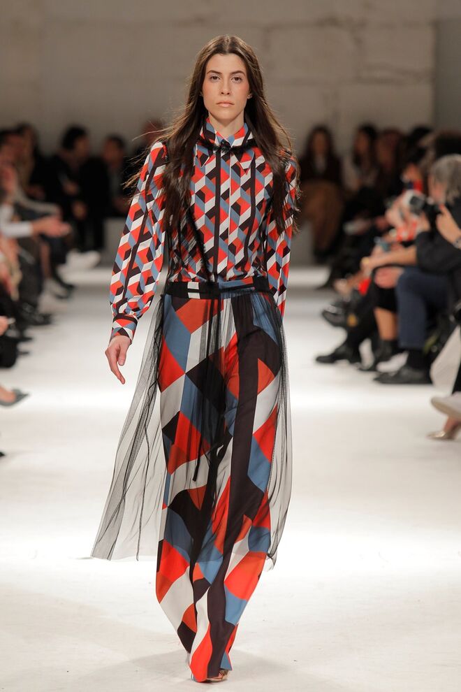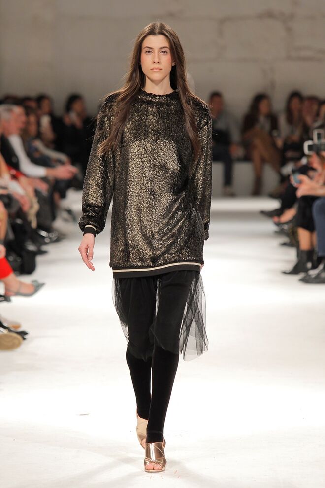 Esta coleção de Carlos Gil reproduz estampados com motivos infantis depurados e aplicações acrílicas que se misturam com padrões geométricos. O mesmo padrão ocorre em diferentes escalas e as texturas surgem tom sobre tom, criando uma nova noção de proporção e movimento.