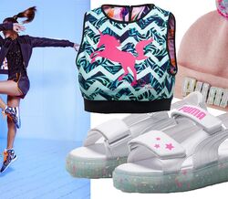 A parceria entre a marca de desporto e a designer de sapatos está cheia de brilhantes e unicórnios.
