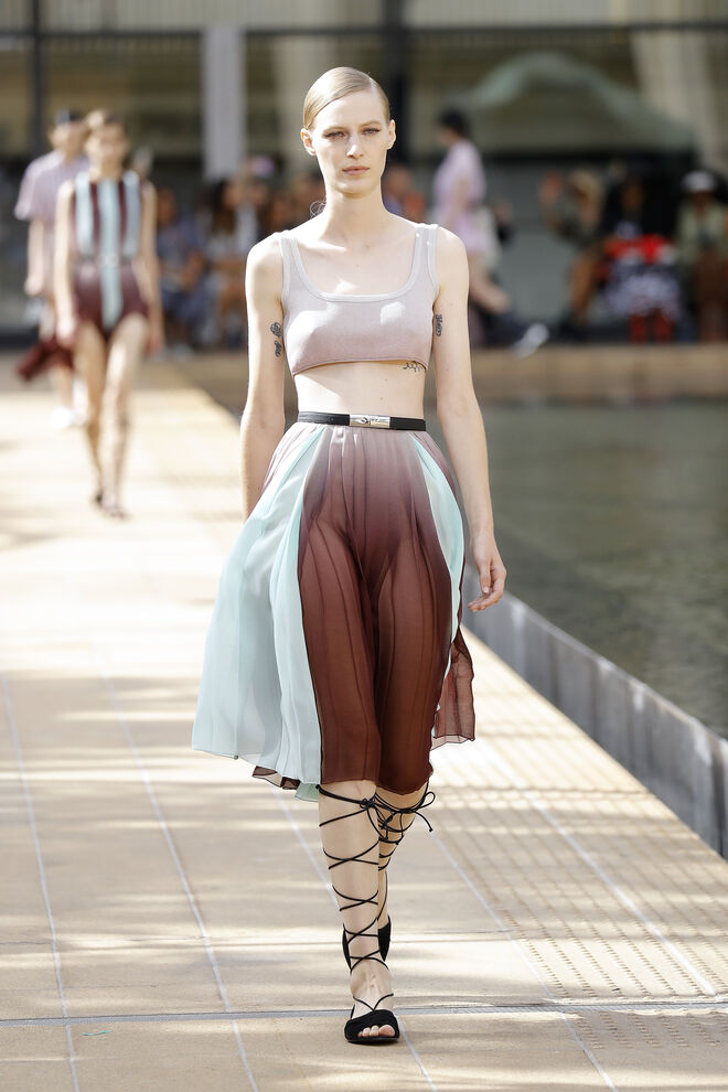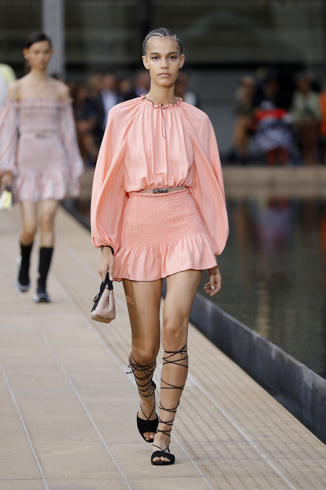 As propostas foram ainda roubar inspiração a duas décadas de estilo, os anos 1970 e 1990, numa mistura de frescura e ousadia inocentes onde não faltaram os crop tops, calções curtos, saias compridas e vestidos plissados. O estilo desportivo encontra-se com o espírito boémio na idealização de propostas leves, tendo por base a mulher descontraída – mas não menos sofisticada. A paleta de cores variou entre os verdes, laranjas, pasteis e turquesas, como que iluminadas pelos raios do sol, que originaram, inclusivamente um padrão – uma recordação dos padrões psicadélicos dos anos 70.