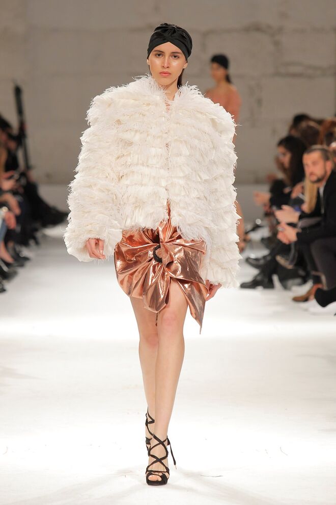 Diogo Miranda trabalhou maioritariamente com o tafetá de seda para criar mangas exageradas, folhos e laços volumosos e decotes que deixam os ombros expostos. Foram, também, usados padrões de flores exageradas em cores pastéis, para criar uma silhueta erótica. Toda a coleção se materializa numa mulher sexy, confiante, feminista e poderosa.