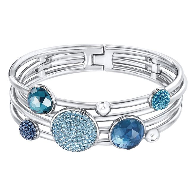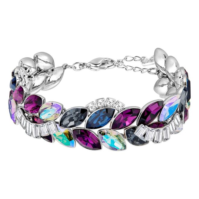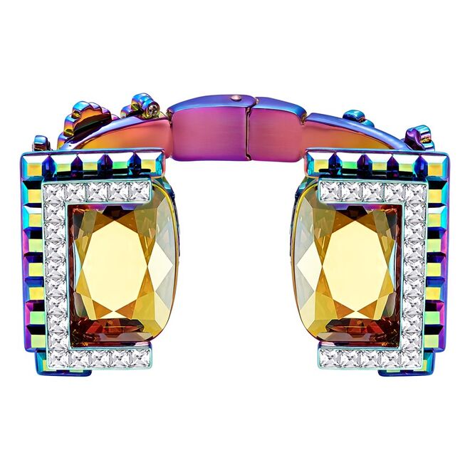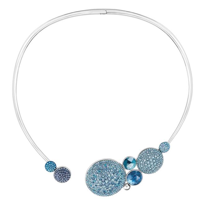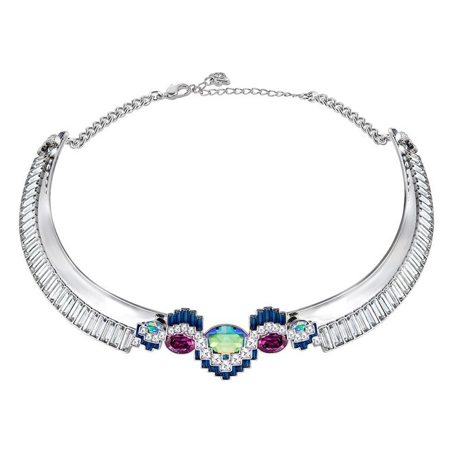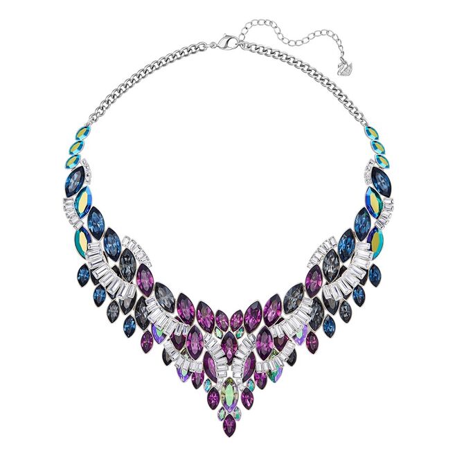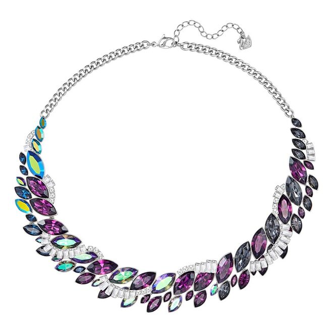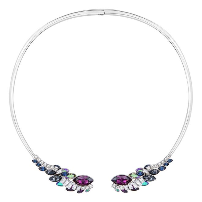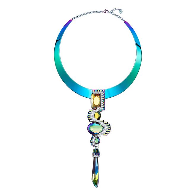 E, uma vez que a galáxia é sinónimo de gradações infinitas de tons escuros e mutáveis, o icónico revestimento Aurora Boreal da Swarovski, criado nos anos 50 para Christian Dior, é a escolha ideal para a terceira variação sobre o tema galáxia. O efeito comemora o seu 60º aniversário em 2016 e empresta às peças o seu arco-íris de tons hipnóticos e vibrantes, potenciando as suas linhas orgânicas.
