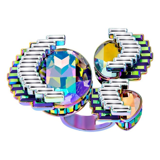“CRYSTAL GALAXY” é o tema perfeito para jogar com luz e sombras e criar peças que celebram a atração misteriosa da galáxia, seja de forma figurativa ou mais abstrata. Trabalhámos com volumes redondos e tridimensionais, novas formas como anéis duplos abertos e silhuetas versáteis, numa gradação de tons que representam eclipses, estrelas e constelações,” explica Nathalie Colin, Diretora Criativa da Swarovski.
