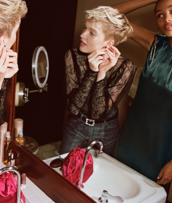 Ao anoitecer, um grupo de jovens desconhecidos prepara-se para uma festa. Vestidos acetinados, veludos em cores ricas e o contraste do brilho das lantejoulas compõem o guarda-roupa do grupo e estão presentes nas peças mais desejadas da época festiva que se avizinha. Pode ver a nova coleção completa aqui.