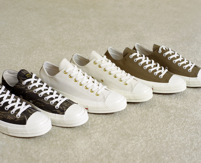 Fazem parte da coleção três modelos Chuck Taylor All Star’ 70 Ox de cano baixo, nos quais são aplicados os clássicos tecidos da Carhartt WIP, como a lona ou o tecido ripstop típico do workwear, e que desta vez são aplicados à imagem da Converse.
