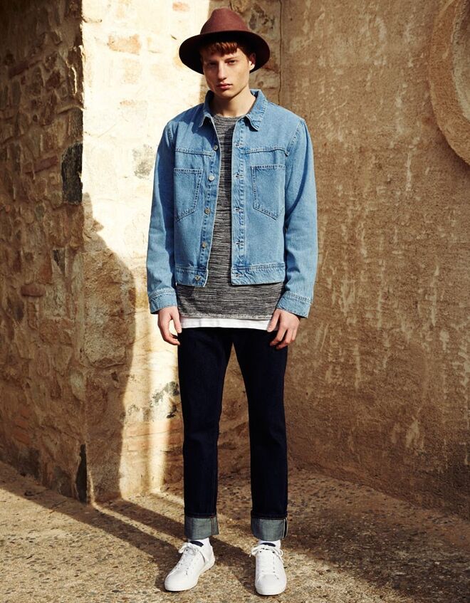O primeiro lookbook da Bershka para esta temporada SS16 aposta no denim em todas a suas versões: calças, casaco e camisas com detalhes de tendência como os rasgados e os estampados de riscas. Predominam as cores neutras, os tons terra e caquis. Os estampados das peças vêm marcados pelos próprios tecidos.