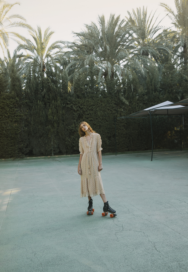 Através das imagens, a campanha retrata uma roadtrip ao longo do continente americano, começando nos quentes finais de tarde californianos da Costa Este e cruzando o deserto do Arizona em busca de terras acolhedoras. A coleção divide-se em três momentos inspiracionais ? Arizona, Latina Vibes e Sunset Dance ? que se materializam, na coleção, em silhuetas intemporais, tecidos de origem natural e padrões boémios como os bordados.