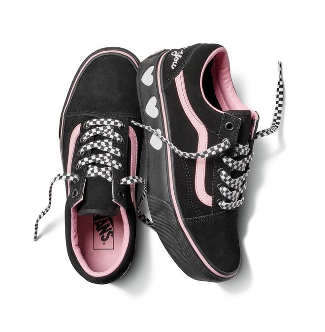 Com uma paleta de cores composta por rosa, preto e branco, a coleção cápsula, que resultou da colaboração entre a Vans e a Lazy Oaf, transporta-nos de imediato para o universo dos vídeos da Princesa do Pop Punk, Avril Lavigne.