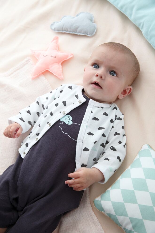 As peças essenciais são os bodies, os pijaminhas, os gorros, os sacos de bebé e os primeiros conjuntinhos. Roupinhas irresistíveis, fabricadas com algodão biológico a pensar na pele sensível do bebé e com detalhes importantes, como a abertura especial primeiros cuidados, os tamanhos adaptados aos mais frágeis e as molas de pressão ajustáveis para os bebés prematuros.