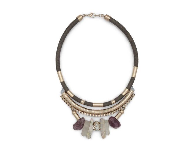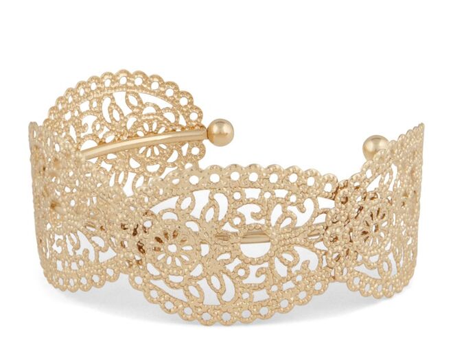 filigrana ou colares que se sobrepõem em camadas.