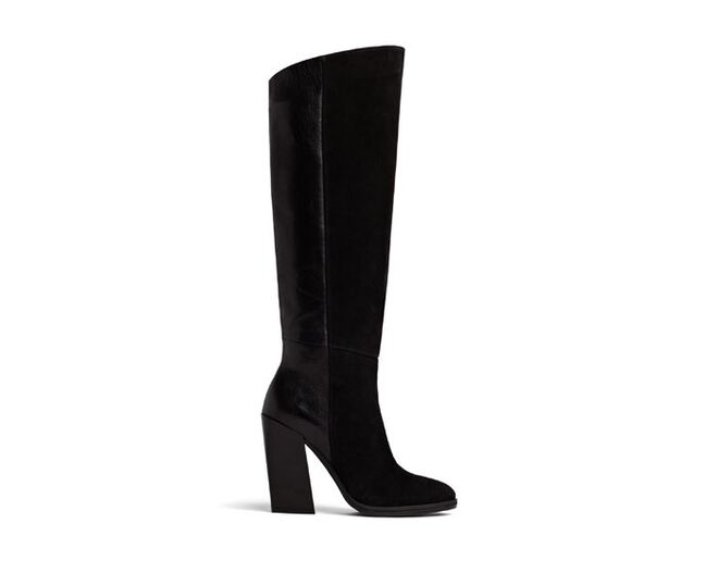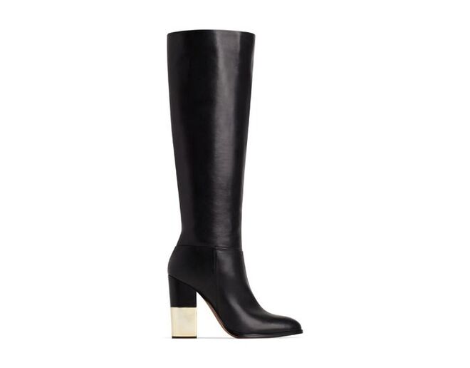 Modelos de botas altas com silhuetas clean e com saltos retangulares assumem destaque em 70´s Remix, bem como