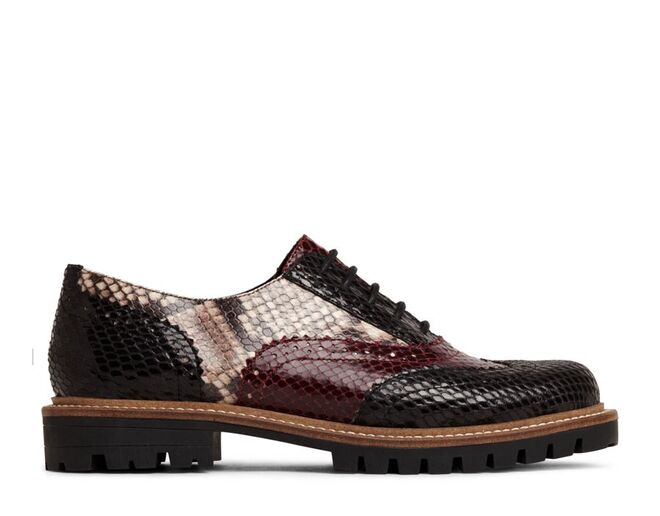 forrados com padrões de répteis e brogues em peles metalizadas e refulgentes elevam-se em solas de borracha