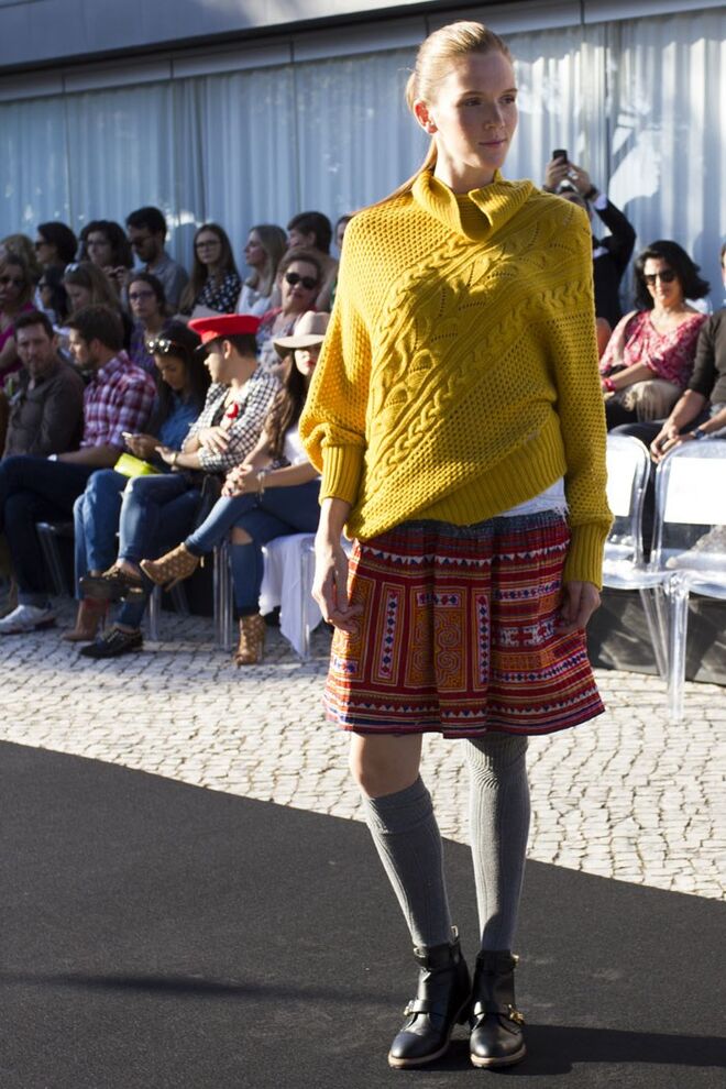 block e chuncky em tons outonais que remetem para um estilo colegial ou tomboy.