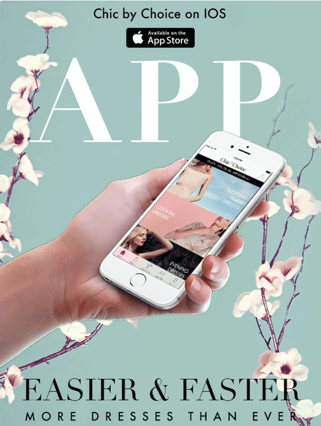 À semelhança do funcionamento do site Chic-by-choice.com, a App vem permitir o aluguer de vestidos e acessórios oferecendo uma navegação mais rápida e através de um processo mais facilitado. Após efetuar o download da App, o utilizador pode registar-se e criar um perfil que permite definir e guardar um conjunto de settings que irão posteriormente ajudar a tornar o processo mais rápido: moradas, formas de pagamento, modelos favoritos, entre outros detalhes.