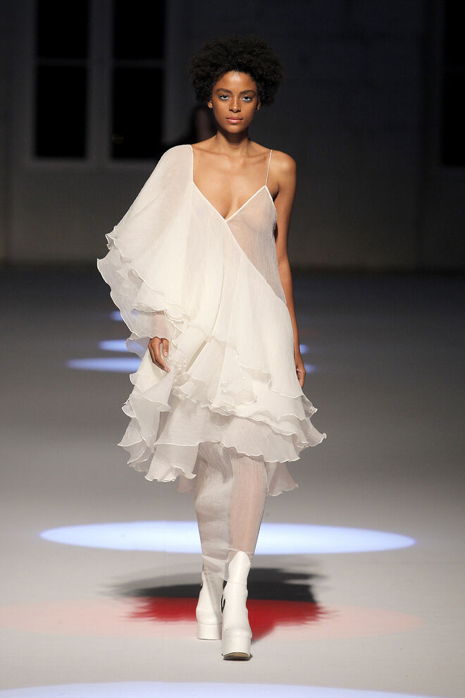 A dupla Alves/Gonçalves desvendou as suas propostas para a próxima primavera-verão 2020, sempre fiel à harmonia entre a riqueza de texturas, cores e padrões. Nesta coleção evidenciaram-se jogos de silhuetas, e assistimos à conjugação de diferentes materiais, do látex aos plissados, ao glitter. Com uma coleção de formas fluidas, a dupla apostou em looks modernos e com um toque futurista, em tons como o preto, branco e cinza.