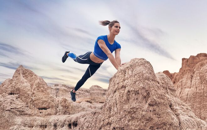 Para mostrar que a linha Sport alia design, estilo e funcionalidade, a sequência foi fotografada num cenário rochoso e natural, que evidencia vários exercícios para garantir a melhor performance. Na escolha das cores, predonimam os tons preto, rosa nude e azul eléctrico, com alguns padrões inspirados na Natureza. As peças em destaque são parkas, crop tops e leggings justas, tanto para ela, como para ele.