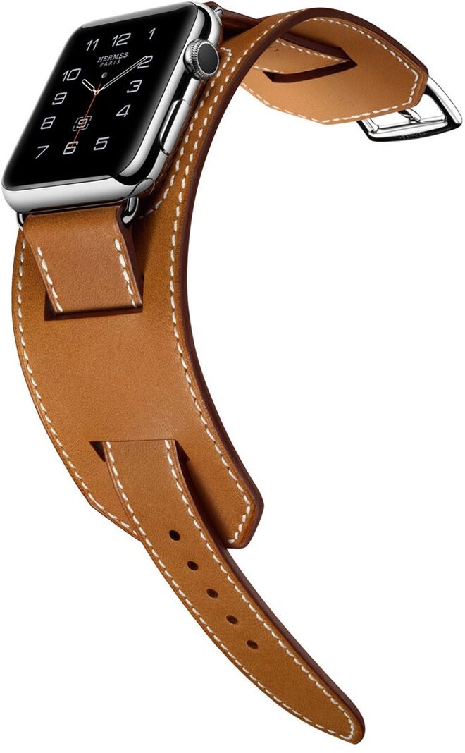 Inspirado no mundo dos acessórios equestres, o requintado modelo Manchette tem uma correia em pele Hermès adaptada para permitir que o sensor de frequência cardíaca permaneça em contato com o pulso. Está disponível numa caixa de 42 mm de aço inoxidável com correia em pele Hermès em tom Fauve.