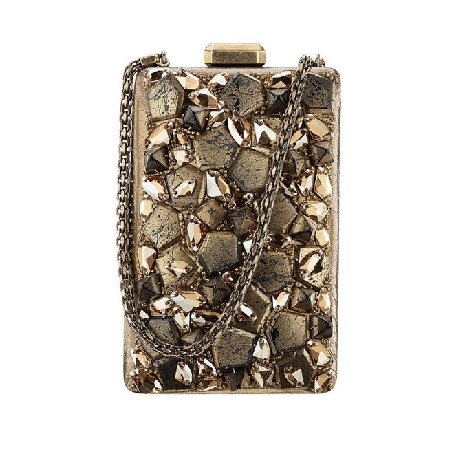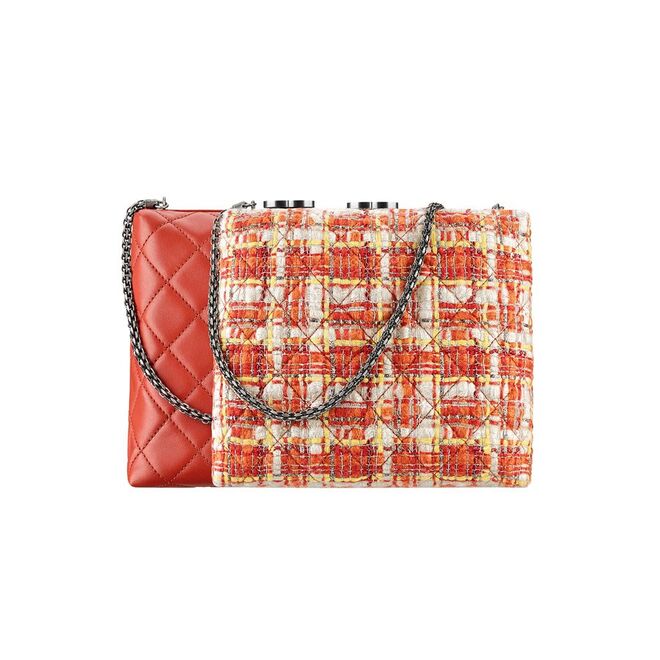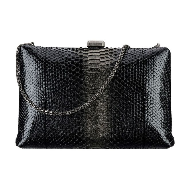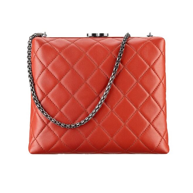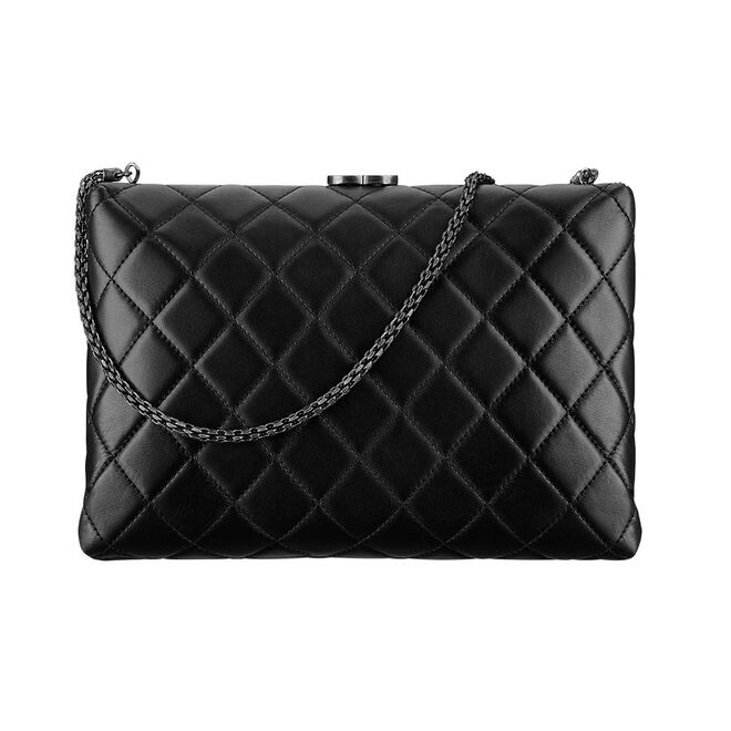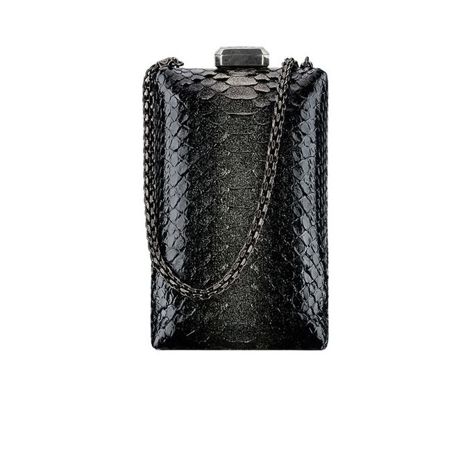 Com sofisticação requintada, as bolsas de festa clutch em couro de píton, veludo ou camurça têm fecho em anéis preciosos cravejados com strass preto, pedras e pérolas naturais. Como sempre na CHANEL, a praticidade é um detalhe invisível: um bolso com zíper fica escondido sob a aba de cada clutch.