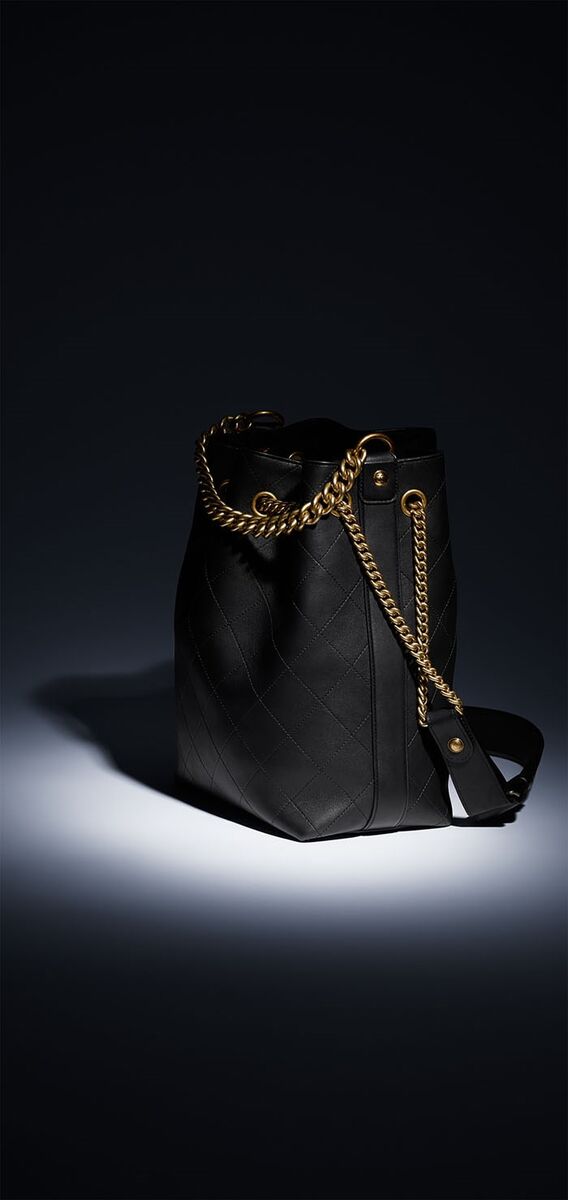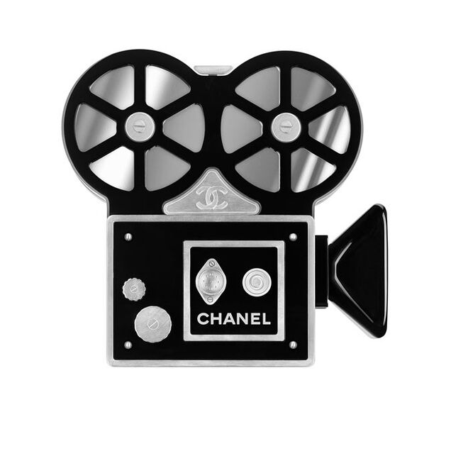 Por fim, com o seu senso de humor característico, Karl Lagerfeld apropria-se do símbolo mais importante do cinema: a câmera. Em resina preta, às vezes iluminada com uma lente de strass, o seu interior esconde uma longa alça de couro que se desenrola exatamente como um rolo de filme.