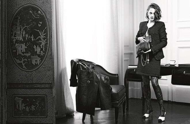 Ao instalar a decoração para sua coleção Paris em Roma Métiers d’art no lendário Cinecittà Studios, Karl Lagerfeld uniu o glamour do cinema italiano com a elegância tipicamente francesa. Para acompanhar os looks, o estilista criou uma linha de carteiras com características icônicas, a BOY CHANEL e modelos inspirados na sétima arte. A marca apresenta-nos a Il Quadrato CHANEL, uma carteira "box" extremamente feminina, com alça de ombro, corrente delicada e adornada com fecho octogonal ou duplo C. Disponível em três tamanhos e materiais diversos, como couro de cordeiro acolchoado ou bordado, couro de píton, couro de lagarto ou tweed, a Il Quadrato CHANEL surge numa rica paleta de cores do outono e carrega em si a precisão funcional e estética tão apreciada pela Maison. A carteira Boy CHANEL é reinterpretada em veludo estilo "espinha de peixe" ou couro bicolor, enquanto a bolsa icônica surge em tweed rosa ou bordada com contas e strass. Com sofisticação requintada, as bolsas de festa clutch em couro de píton, veludo ou camurça têm fecho em anéis preciosos cravejados com strass preto, pedras e pérolas naturais. Como sempre na CHANEL, a praticidade é um detalhe invisível: um bolso com zíper fica escondido sob a aba de cada clutch. Por fim, com o seu senso de humor característico, Karl Lagerfeld apropria-se do símbolo mais importante do cinema: a câmera. Em resina preta, às vezes iluminada com uma lente de strass, o seu interior esconde uma longa alça de couro que se desenrola exatamente como um rolo de filme. Para a campanha de publicidade desta coleção Métiers d’art "Paris em Roma" 2015/16, Karl Lagerfeld contou de novo com a atriz americana Kristen Stewart.