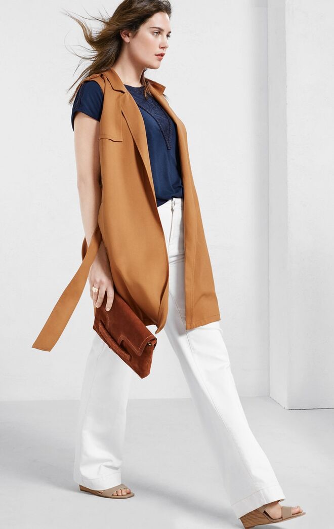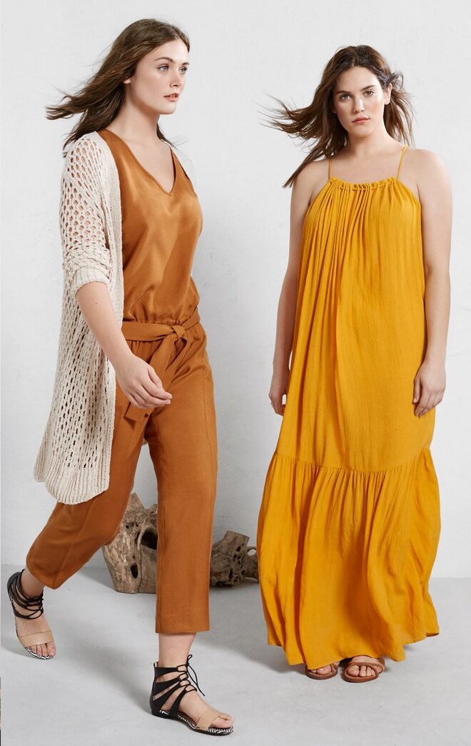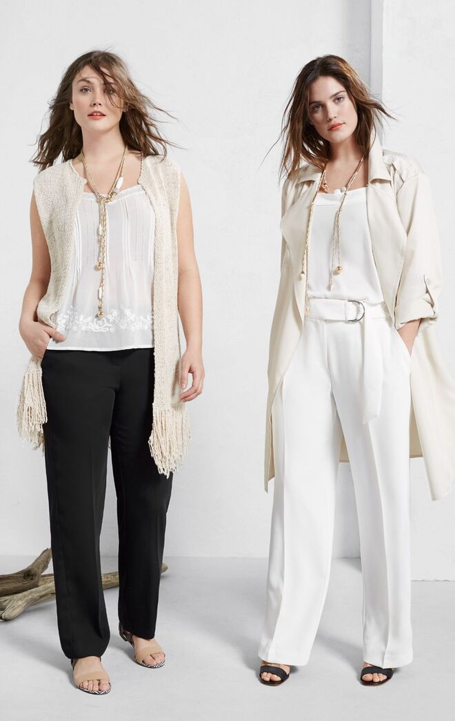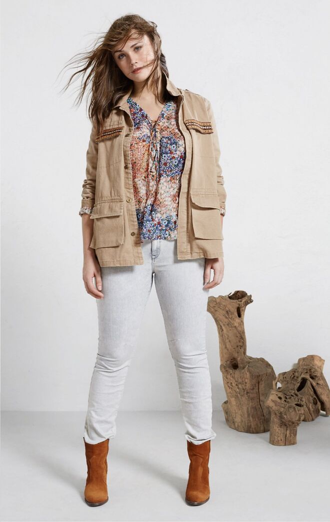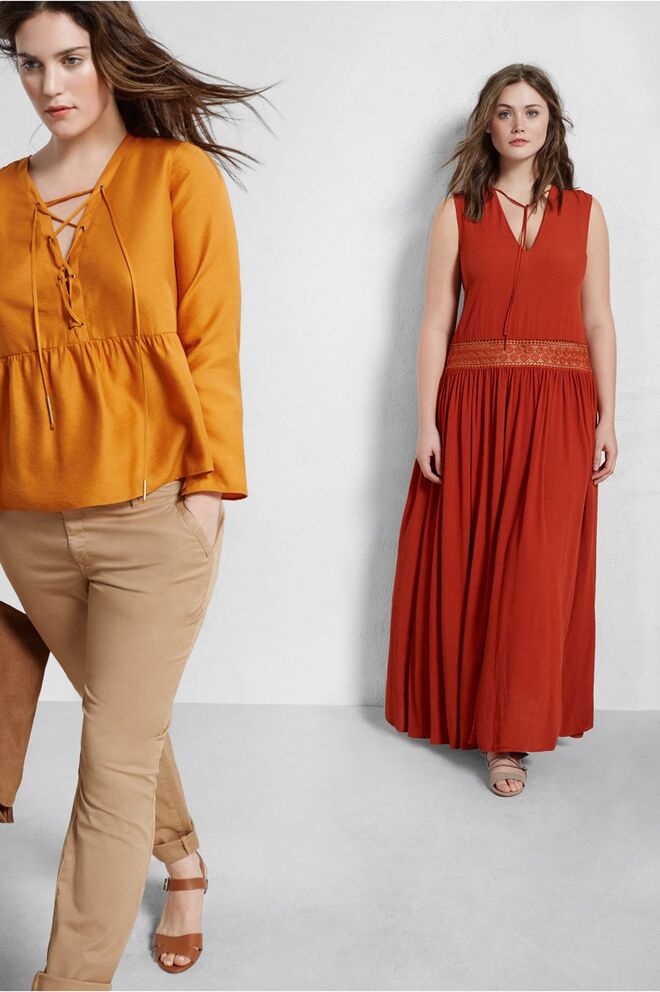 Os tons que predominam na coleção são o amarelo mostarda, o dourado conhaque, que saltam à vista nos macacões e jardineiras, duas das peças chave na próxima primavera. As rendas, os bordados e a caxemira, três tecidos icónicos da Mango, voltam a ser usados, dando um toque juvenil e fresco a toda a coleção desta linha para mulheres com curvas. O oversized é um tendência constante em todas as peças.