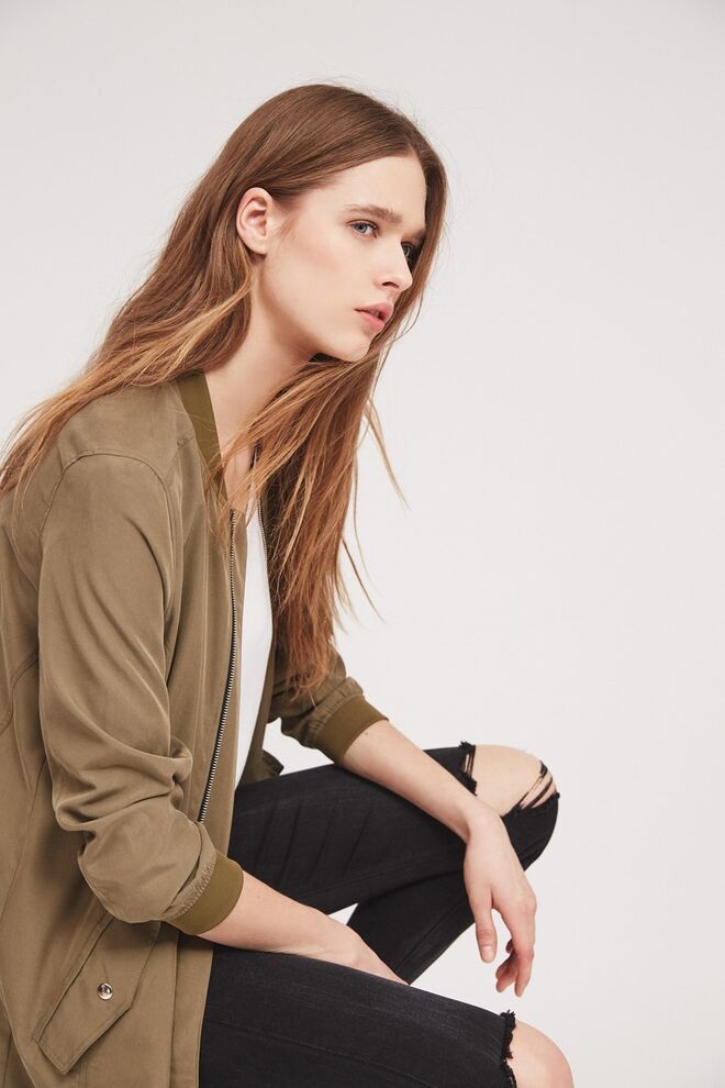 Bershka continua com a proposta "Must Have!" para esta temporada: moda e tendência a preços acessíveis. O bomber, o primeiro 'it' da estação, estará disponível em preto e caqui a partir de Março em todas as lojas e em bershka.com.