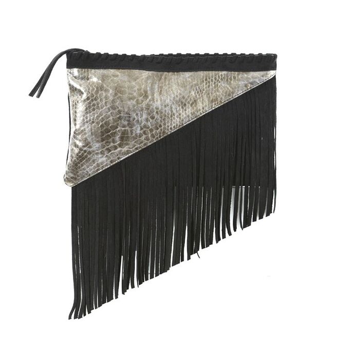 Predominam as cores: preto, prata e bourdeaux nas peças com detalhes em lantejoulas. Acabamentos com efeitos metálicos envelhecidos e franjas extra longas nos vestidos, saias e acessórios.