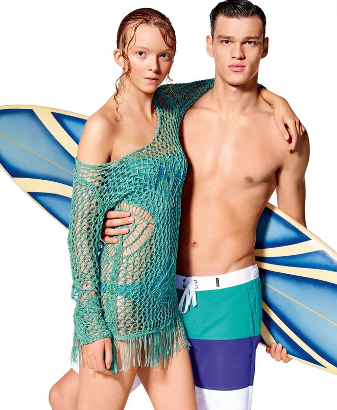 Ao combinar a sabedoria e o know-how associada ao trabalho das malhas e ao desenvolvimento de fios de elevado desempenho e resistentes ao sol e ao cloro, a Undercolors lança uma mini coleção vanguardista e contemporânea de beachwear.Beach Knitwear é a gama exclusiva de complementos de banho trabalhados a crochet, rendas e malhas zig zag. Esta linha é composta por biquinis, calções e túnicas com uma mistura irresistível de cores e de pormenores trabalhados. Tops estampados, com estampados no centro ou nas zonas laterais, slips com lacinhos, shorts com ornamentos nas extremidades, em chevron multicor ou com aplicações de rendas. Minivestidos coloridos com rendas que vêm com franjas e com slips de licra para permitir toda uma série de combinações.