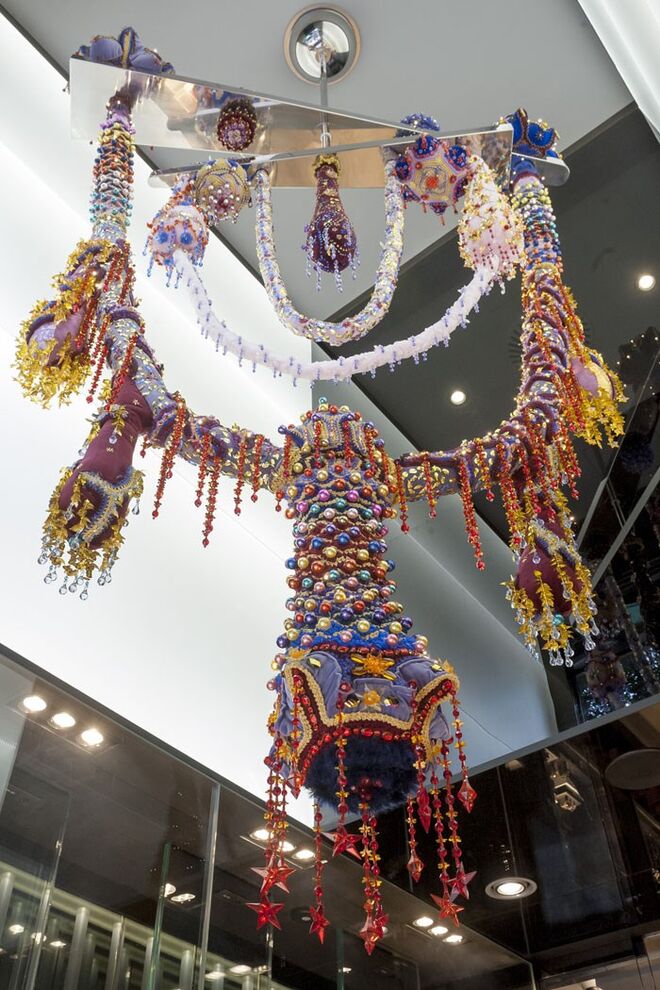 Uma verdadeira Galeria de Arte, a nova Boutique dos Relógios Plus da Avenida da Liberdade convida a uma viagem pelo universo das obras-primas dos mais variados campos artísticos. A jornada tem inicio logo na entrada da loja, onde um imponente lustre da conceituada artista portuguesa Joana Vasconcelos conquista os amantes da arte. Criado em exclusividade para a Boutique dos Relógios Plus, o Mobile do Tempo traduz-se num lustre cinético, com dois grandes ponteiros (minutos e segundos) suspensos e paralelos ao tecto, que sustentam braços de croché iluminados por dezenas de luzes LED.
