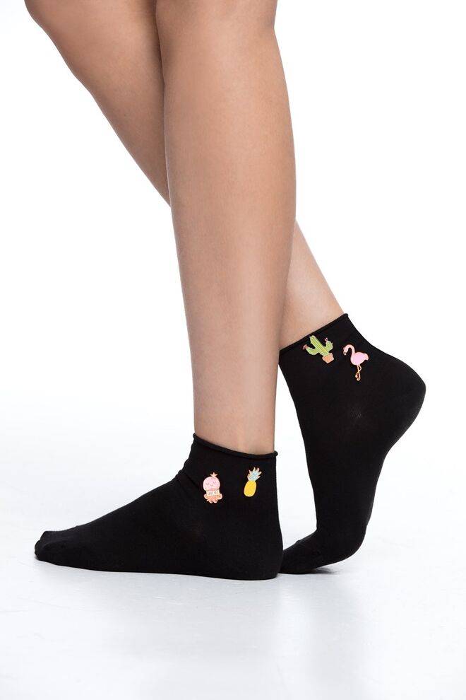 Para as mais discretas, a marca pensou em dois modelos de collants com detalhes como laços, que formam uma risca ao longo do comprimento da perna e uma longuette mais inocente com pequenos corações vermelhos e pretos. Há ainda uma coleção alusiva a frases trendy, como "Girl's gang", da qual fazem parte também aplicações de imagens de sedução, como batons ou lábios.