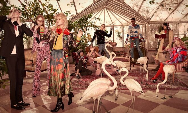 A Gucci acaba de lançar a mais recente campanha Pre-Fall 2016, num cenário que em muito faz lembrar qualquer destino exótico, entre arvoredo, penas e flamingos.