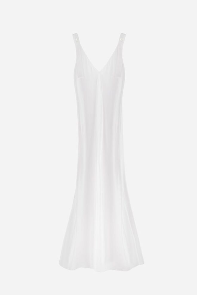 O vestido mais procurado é adornado com pérolas nas tiras. Os modelos desta marca não excedem os €300 (bem mais acessíveis que os vestidos de noiva tradicionais) e existem em várias cores, para também atender às necessidades de convidadas ou damas de honor.