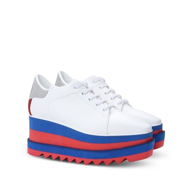 O modelo simboliza o novo estilo athleisure de Stella McCartney, inspirado no desporto e que conta ainda com uma plataforma bicolor. Estes sapatos estão disponíveis no site da marca por €545.