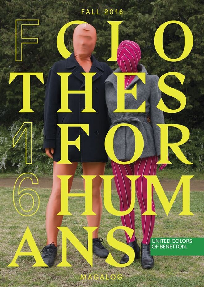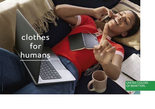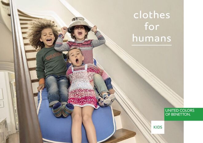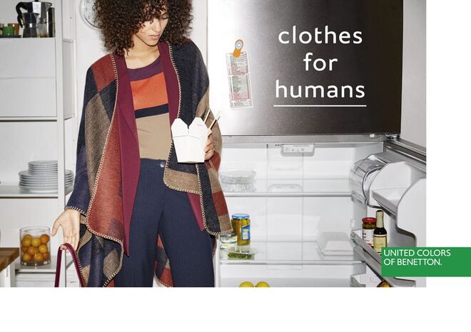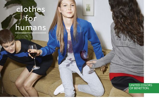 "Humanos. Uns mais felizes. Outros mais tristes. Outros que são as duas coisas ao mesmo tempo" reza o manifesto que resume a filosofia clothes for humans, "Fazemos roupas para todos ". A Benetton abraça assim as emoções e dá mais um passo em frente, reforçando o seu papel de marca que, mais do que qualquer outra, sempre esteve próxima das pessoas, no seu dia-a-dia, com todas as suas diferenças.