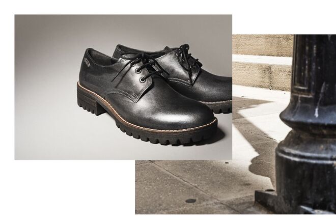 A coleção cápsula oferece-nos um total de seis modelos: bluchers, botins e runners. Fiel ao estilo da marca britânica, bluchers em prateado degradé e tons dourados são a versão renovada do sapato clássico com atacadores.