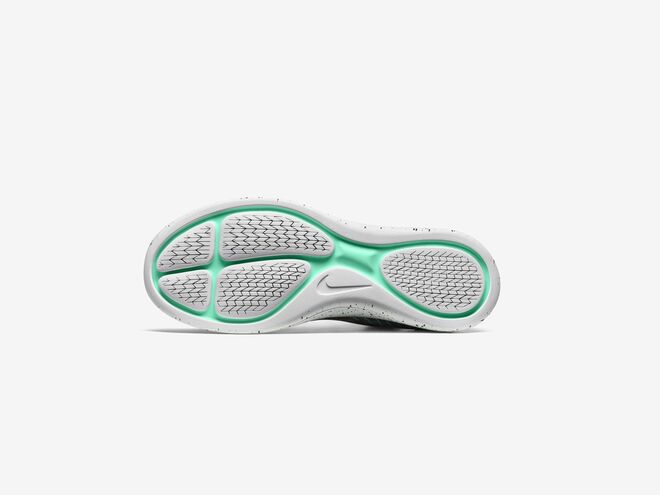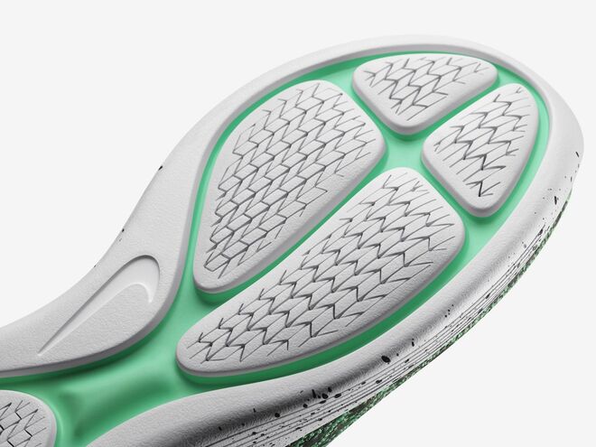 Os designers da Nike pesquisaram e testaram múltiplos padrões de solas em diferentes condições, desde o Inverno profundo com neve e caminhos de lama das Montanhas Rochosas no Colorado, até aos momentos de degelo do início da Primavera. Por fim, acabaram por encontrar uma solução que se adapta a várias superfícies, permitindo a cada passo uma canalização da água por baixo do calçado. O padrão resultante é feito a laser com precisão na sola de espuma, preservando as transições entre cada passada e o impulso de retorno de energia.