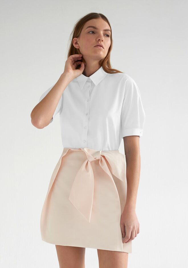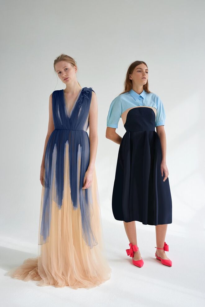 Vestidos em tule, camisas brancas e saias em tons nude fazem parte da coleção.