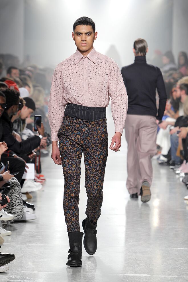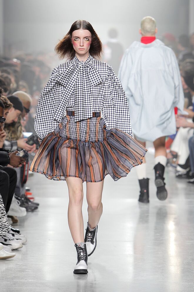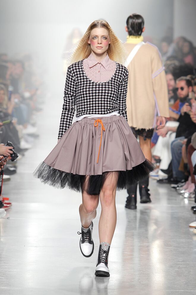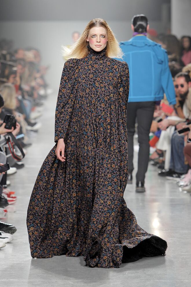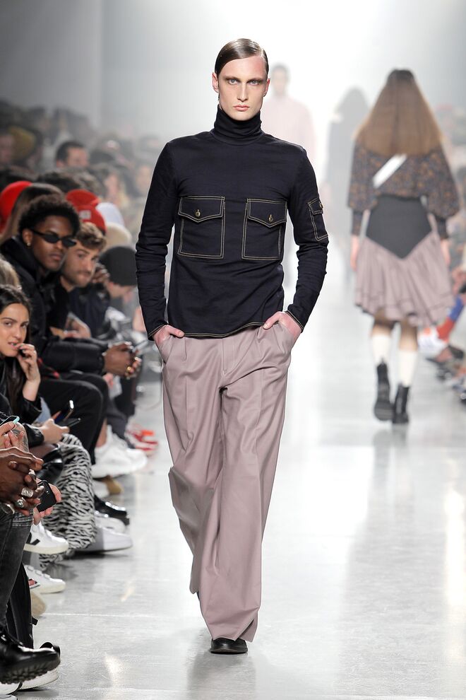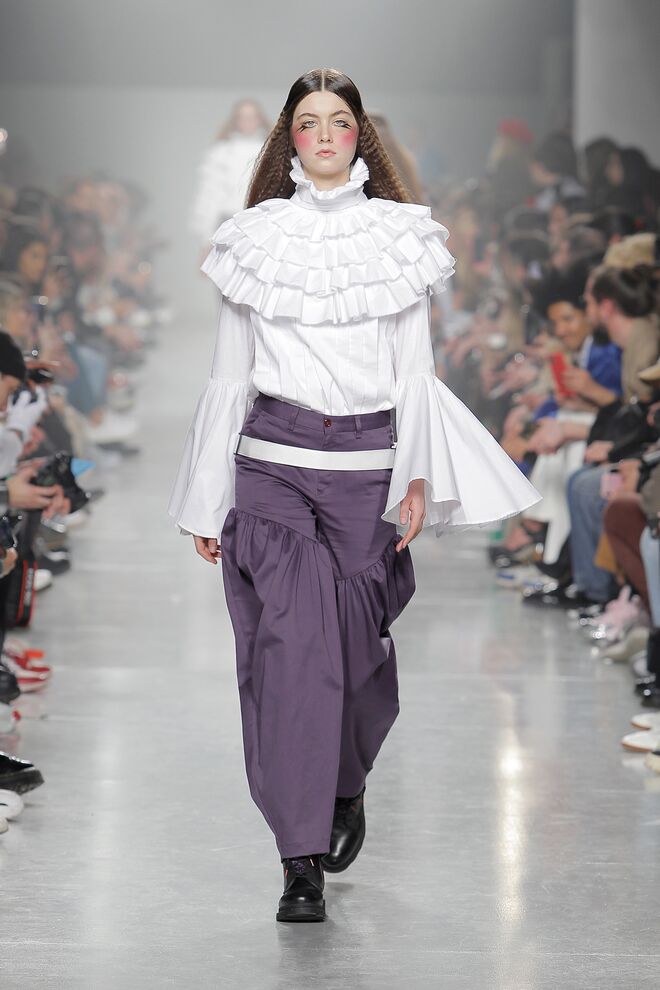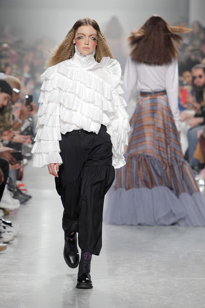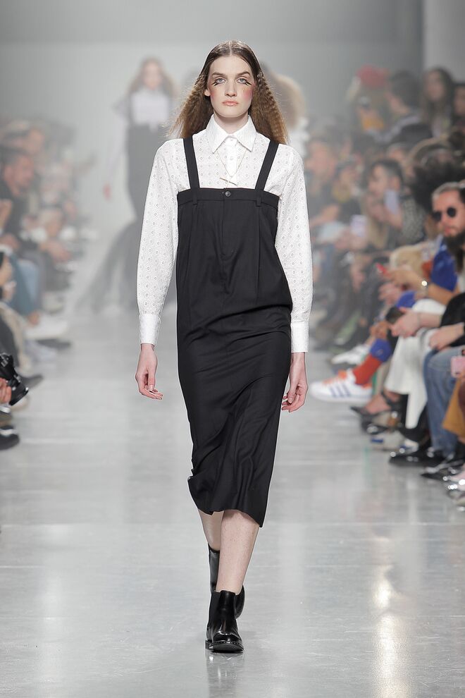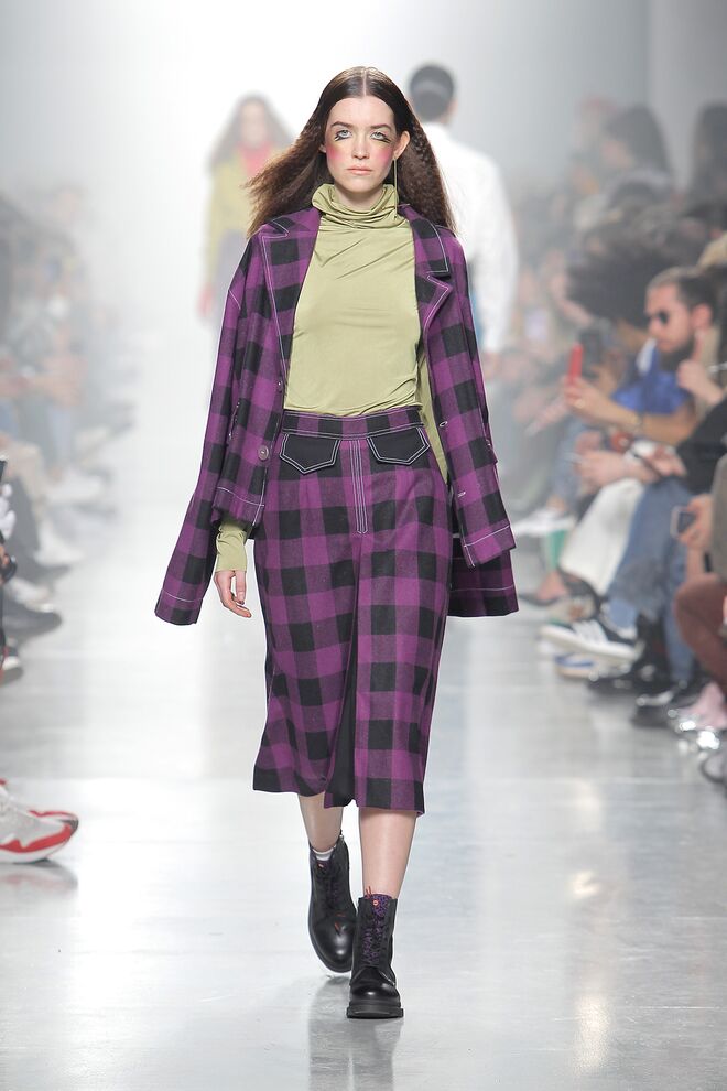 Elementos do universo rural e folclórico aplicados em peças urbanas e de streetwear. Dino Alves apresentou uma coleção de opostos em que as saias afinal eram vestidos, as camisolas pareciam camisas, as calças eram saias e vice-versa. O outono-inverno quer-se múltiplo e ainda bem.