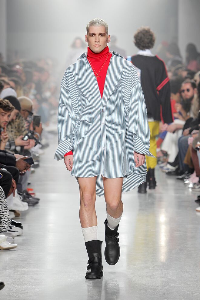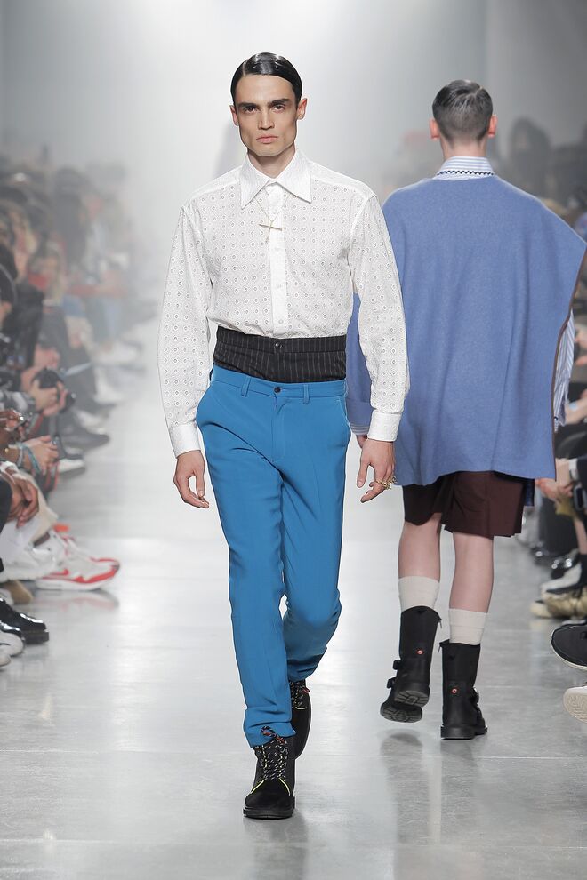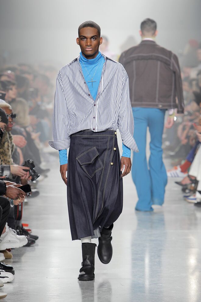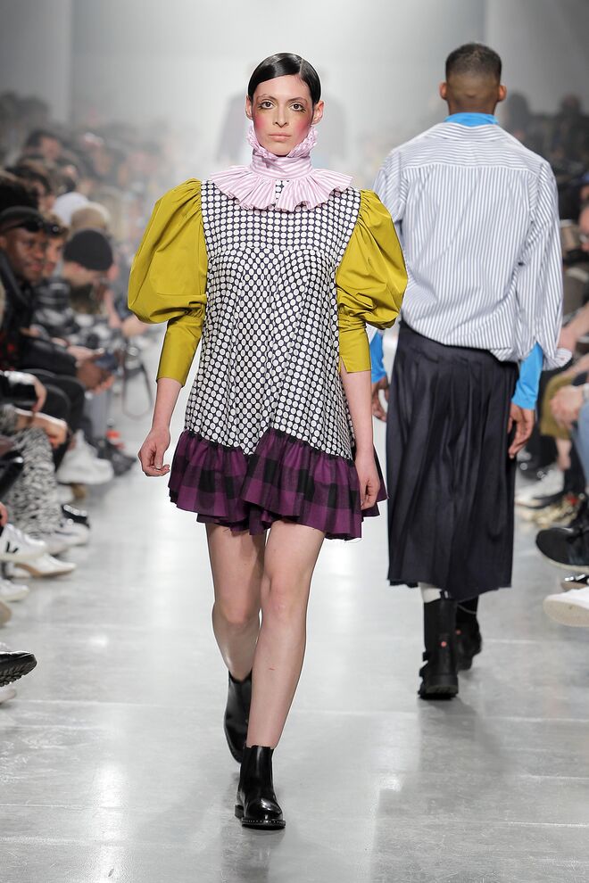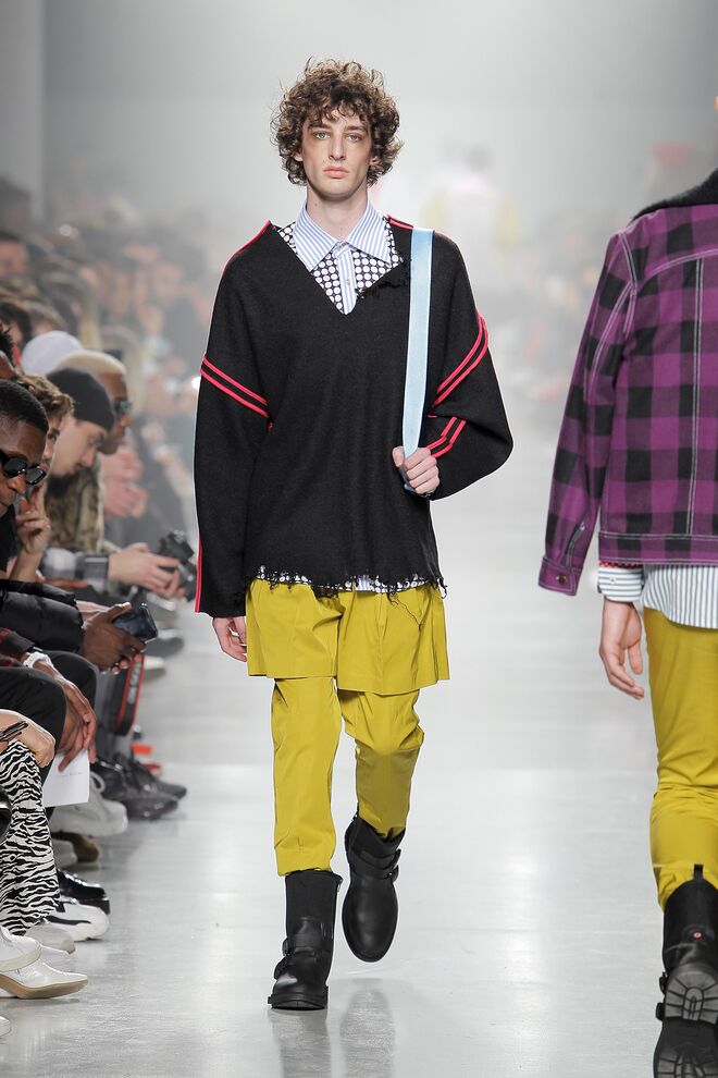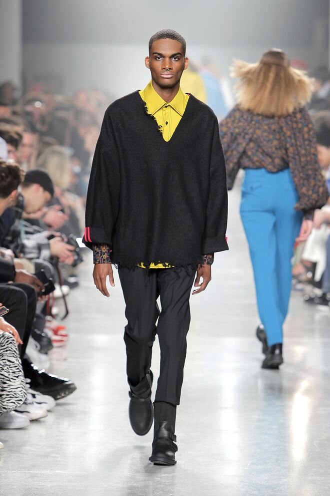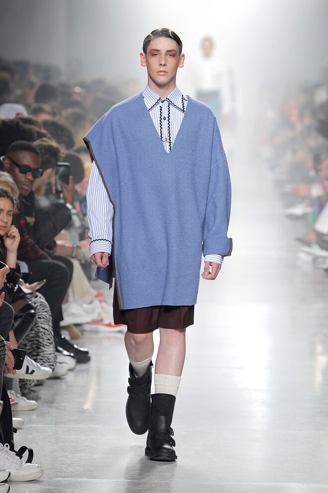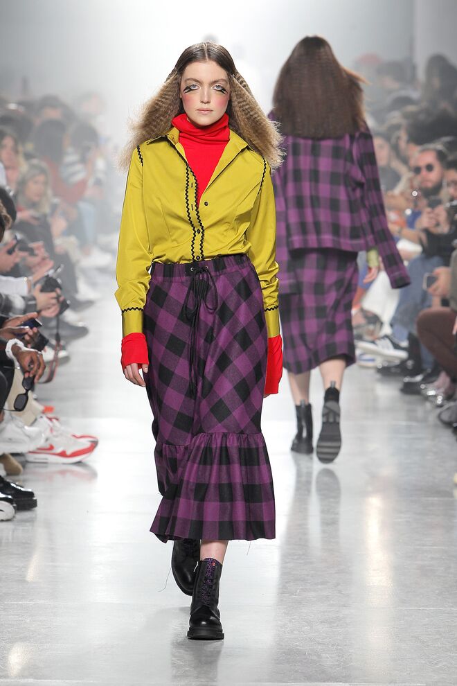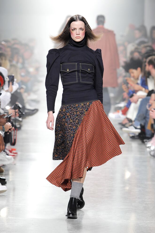 Elementos do universo rural e folclórico aplicados em peças urbanas e de streetwear. Dino Alves apresentou uma coleção de opostos em que as saias afinal eram vestidos, as camisolas pareciam camisas, as calças eram saias e vice-versa. O outono-inverno quer-se múltiplo e ainda bem.