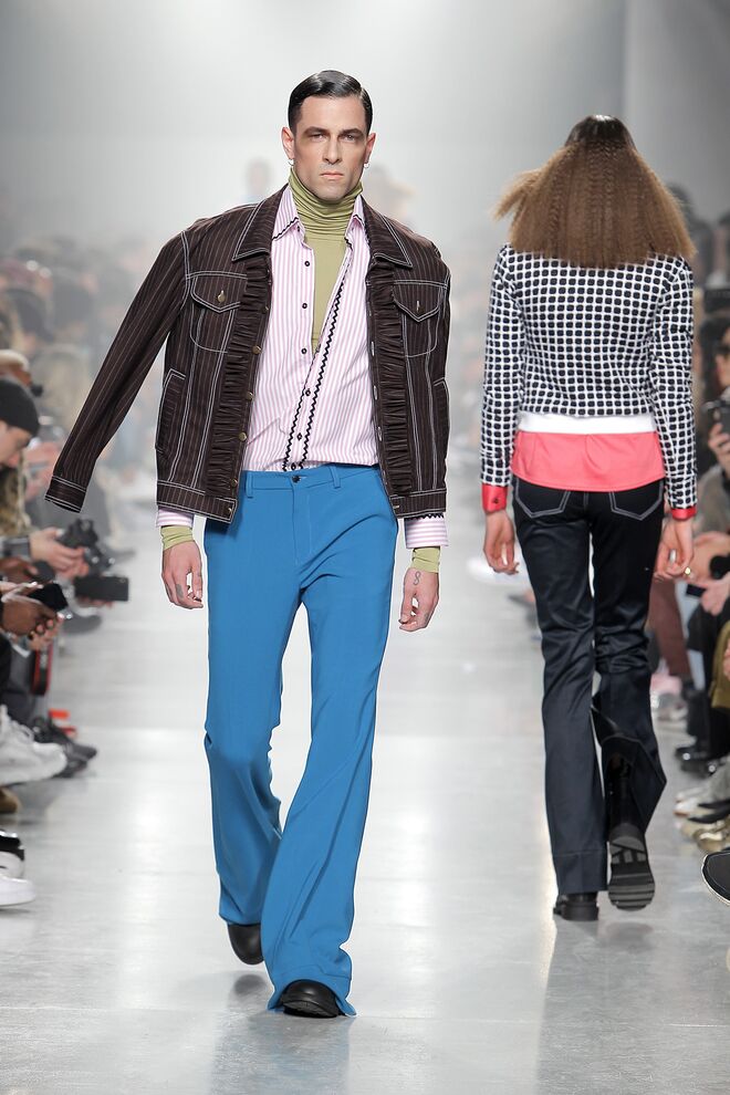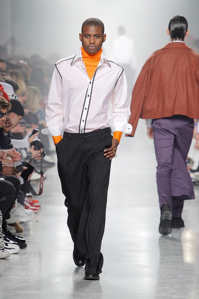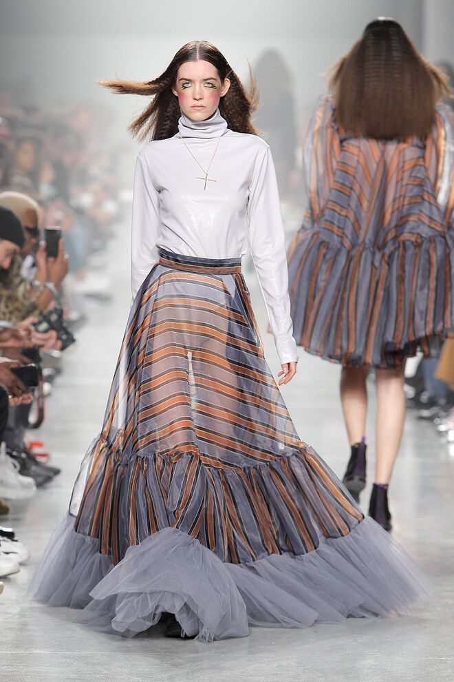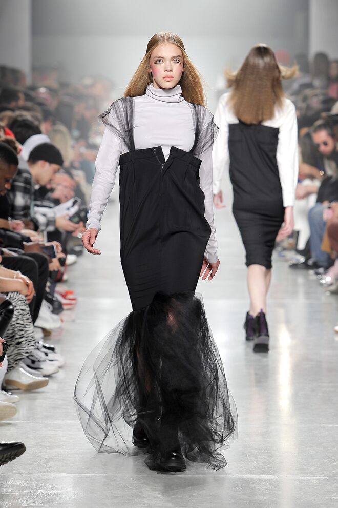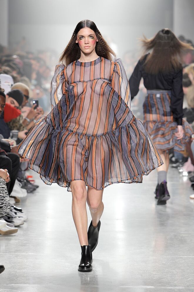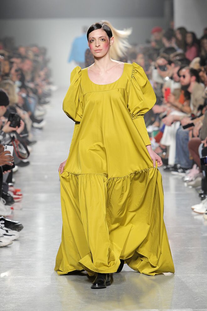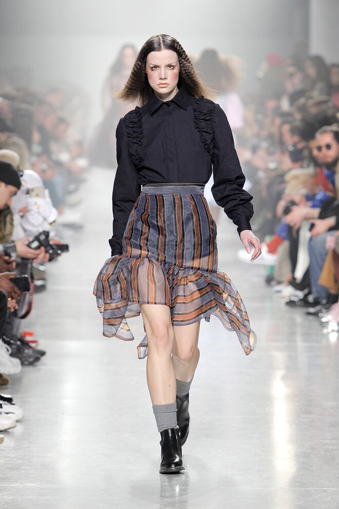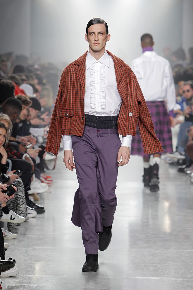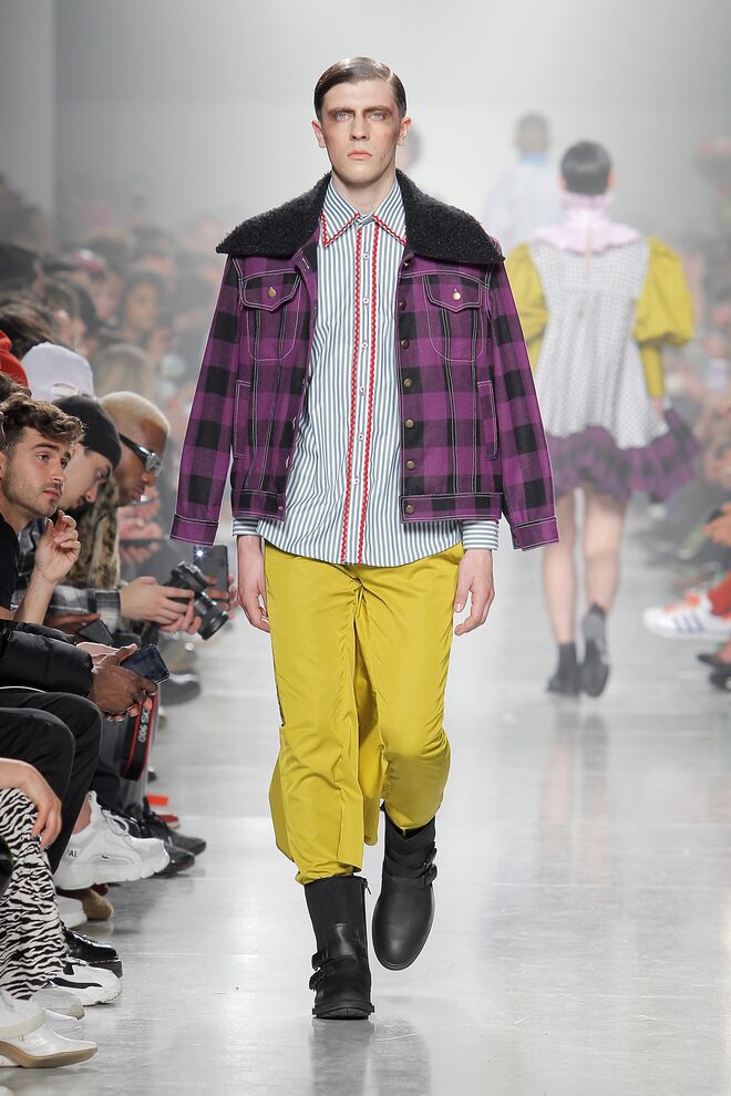Elementos do universo rural e folclórico aplicados em peças urbanas e de streetwear. Dino Alves apresentou uma coleção de opostos em que as saias afinal eram vestidos, as camisolas pareciam camisas, as calças eram saias e vice-versa. O outono-inverno quer-se múltiplo e ainda bem.