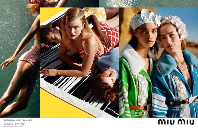 A terceira campanha fotográfica da Miu Miu, captada por Alasdair McLellan, traduz-se agora num vídeo que nos transporta até ao próximo verão. Suddenly Next Summer tem como plano de fundo as bonitas praias da Califórnia, e narra uma tarde passada com amigas, Elle Fanning (a protagonista) Karen Elson, Caroline Murphy, Lara Stone.