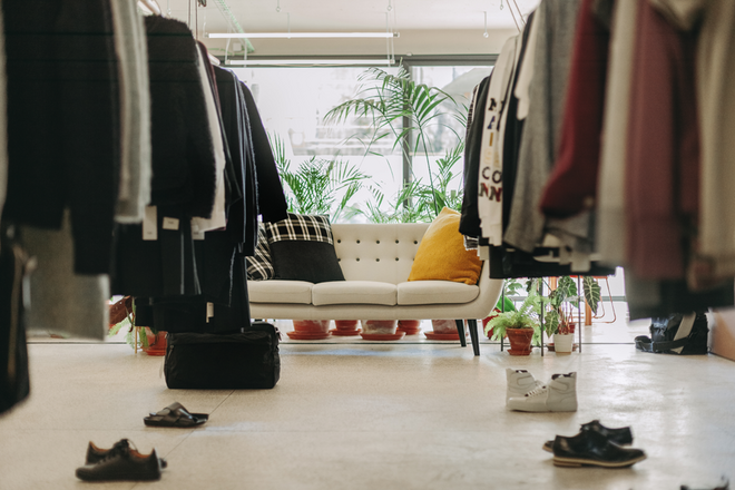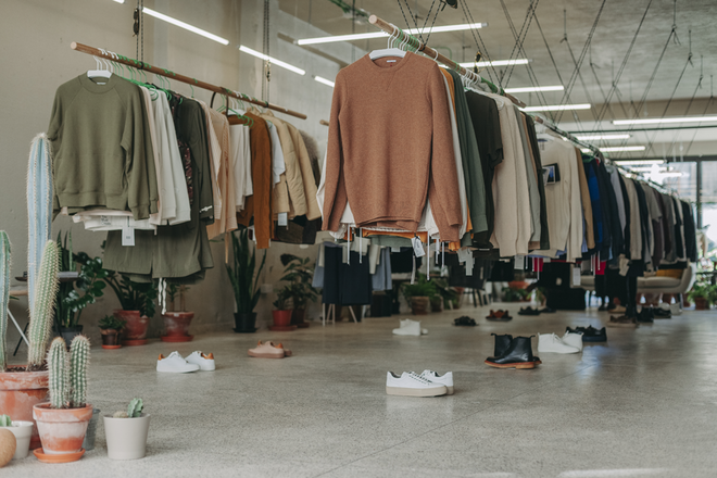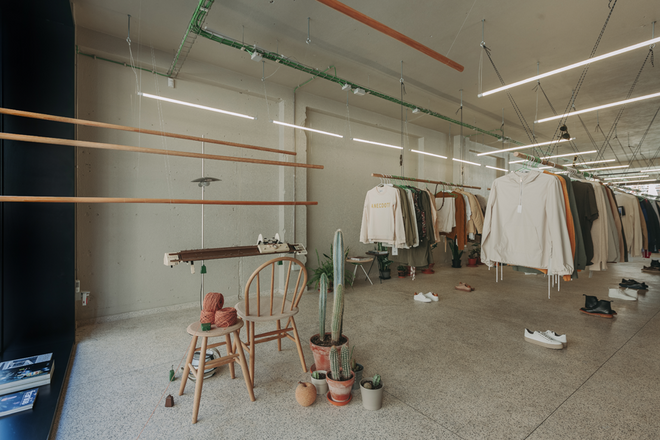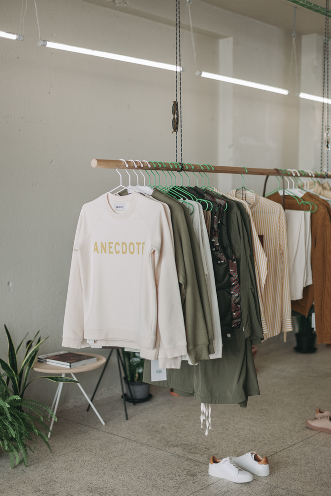 Patrícia e Emanuel não são só os responsáveis pela génese da Early Made, são também os curadores de todo o espaço. "Ter o hotel há cinco anos permitiu conhecer uma série de project managers de grandes marcas internacionais que vêm a Portugal regularmente para fazer ou controlo de início de produção ou de produto acabado" explica-nos Emanuel. "Foi através desse acaso que conhecemos pessoas que vêem de marcas desde a Chloé à Zara. A linha de curadoria que estabelecemos para as marcas que estão aqui representadas é que tenham uma relação com Portugal, e normalmente essa relação é de know-how – de produção cá, ou mesmo de uso do material português que acaba por ser utilizado na confecção das peças. Podemos dizer que a origem da confecção de pelo menos 50% das peças que estão em loja é no Norte do país. Neste momento temos três marcas francesas, três marcas inglesas, duas marcas holandesas, duas suecas e uma portuguesa, Armando Cabral. Todas elas têm uma forte conexão com a indústria portuguesa." Litoral, Anecdote, e=mc2, Folk, Les Basics, Maria Vicente e New Heroes & Pioneers são apenas alguns exemplos.