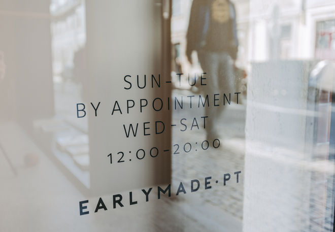 Pensada para funcionar com duas vertentes, a Early Made foi pensada para fazer justiça à premissa made in Portugal mas numa versão real em venda, mas também como espaço físico para plataforma artística. Depois do percorrermos o interior da loja, onde de um lado e de outro encontramos peças de vestuário suspensas (uma particularidade do espaço, que permite versatilidade na disposição das peças sazonalmente) encontramos a Whitebox Room. "É um espaço multifunção que se foca na produção de coisas relacionadas com arte têxtil, desde os lavores mais tradicionais a uma vertente mais moda. Para além da produção de uma marca própria Early Made (em breve) queremos que receba artistas ou pessoas que estejam a trabalhar em arte têxtil." Mas há mais. No piso inferior, encontramos aquilo a que a dupla criativa chama de Blackbox. "A Black Box que fica em baixo (…) e é mais relacionada com instalações artísticas tridimensionais, vídeo, artes performativas, e serve de residências artísticas aos artistas e depois de partilha com o público" explica Emanuel. Em janeiro, a Early Made recebe parcerias artísticas com as Inaugurações Simultâneas de Miguel Bombarda.