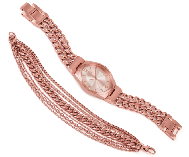 Inspirada no espírito boho chic, tão próprio dos dias de verão, a nova coleção da Eletta sugere o conjunto relógio e pulseira com um design singular, repleto de detalhes inspirados no vintage. O brilho dos tons metalizados preenche as quatro versões – gold, silver, rose e blue - desde os mostradores às braceletes em corrente. As irresistíveis pulseiras que completam o conjunto revelam-se o toque final de elegância no seu look.