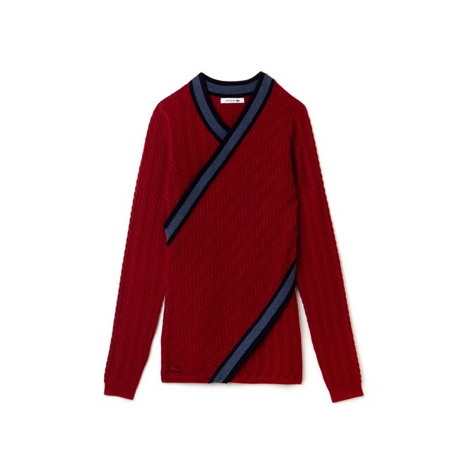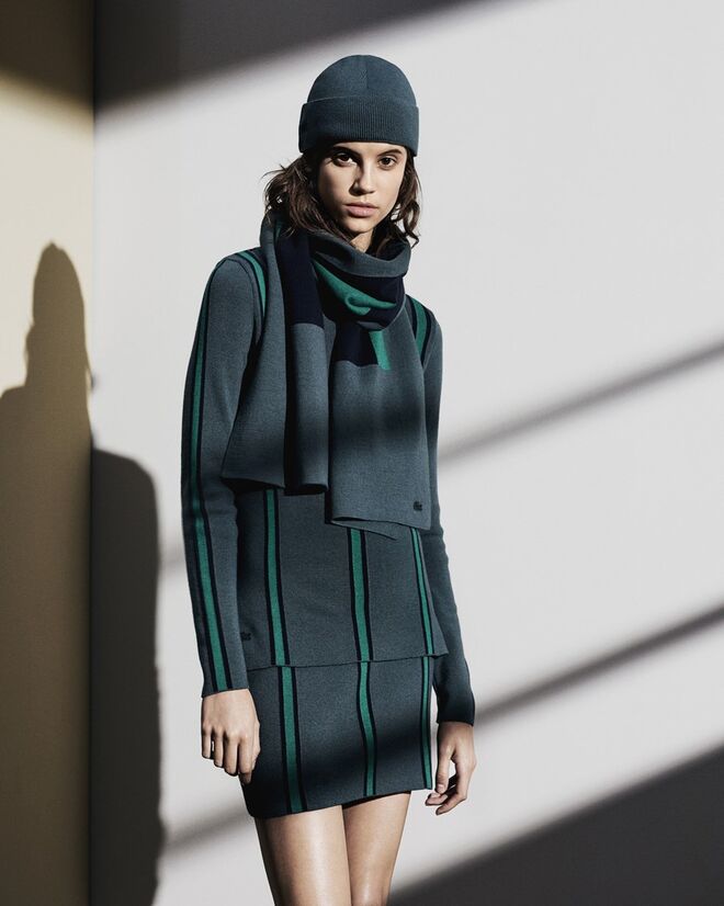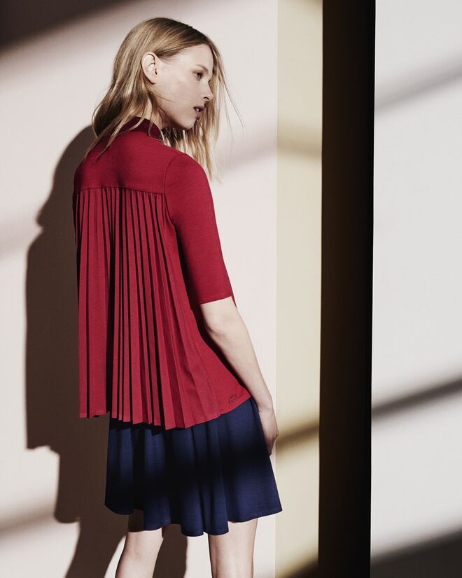 Crocodilos bordados, plissados, linhas estruturantes e riscas tradicionais dominam esta coleção, que mistura azuis e verdes escuros com o burgundy para reavivar os clássicos tons do ténis.