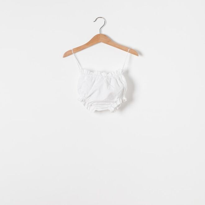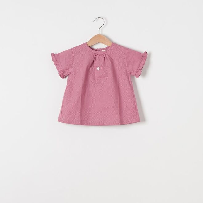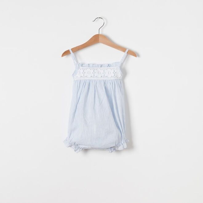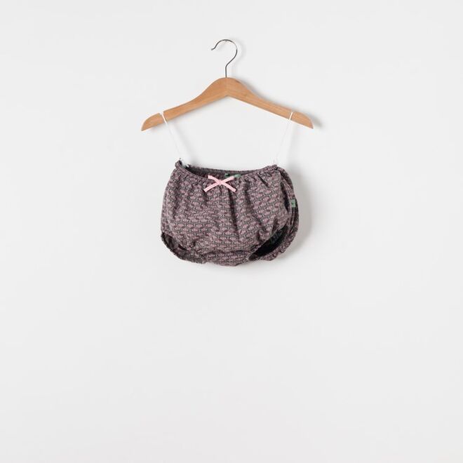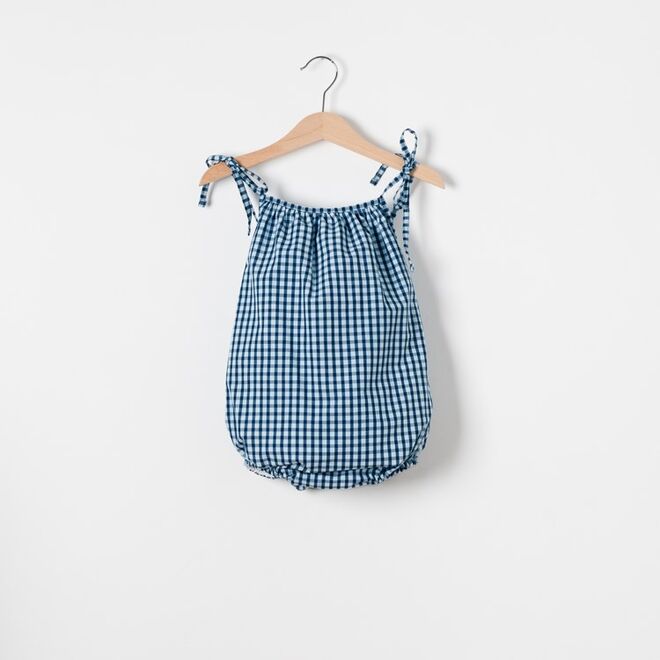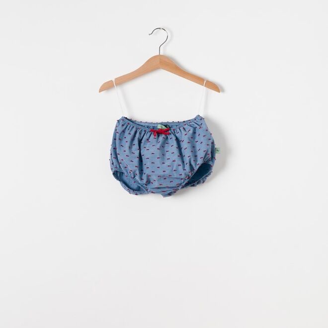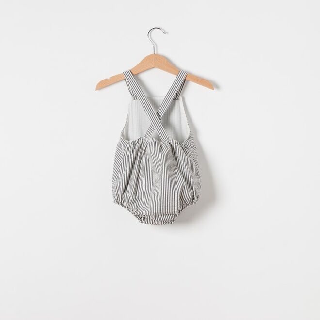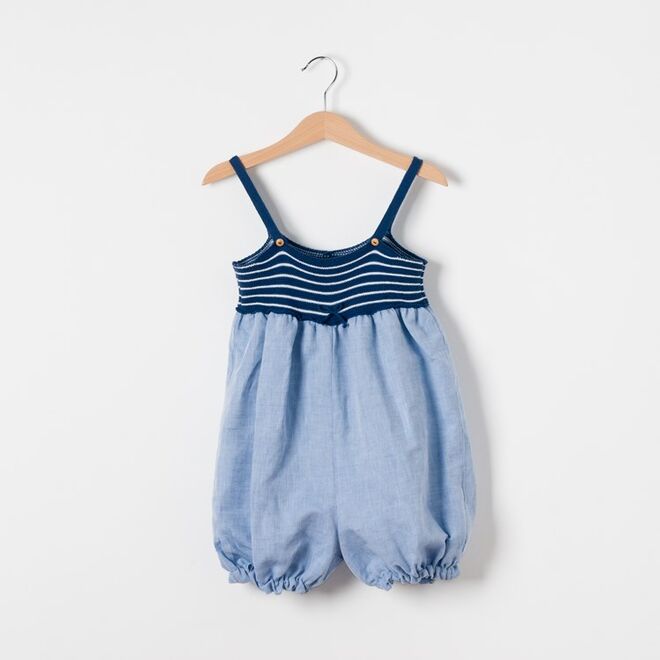 O tecido protagonista é o plumeti, uma versão de algodão bordado, que se conjuga com os padrões de bolinhas (polka dots), riscas e xadrez. As peças são simples mas não básicas: cueiros, fofos, bloomers e pequenas jardineiras, com aberturas pensadas para a muda de fralda fácil e confortáveis. Grande destaque ainda para as malhas tricotadas, ideais para vestir nos bebés pequeninos e acabados de nascer.
