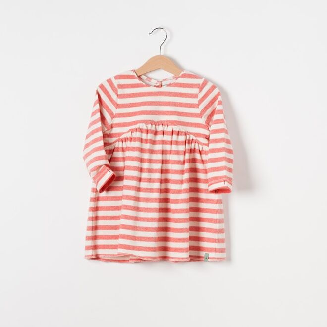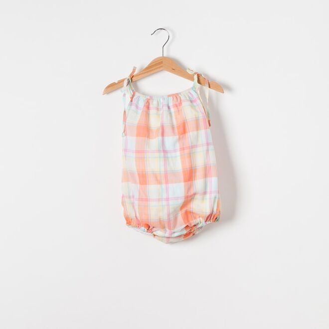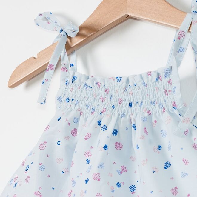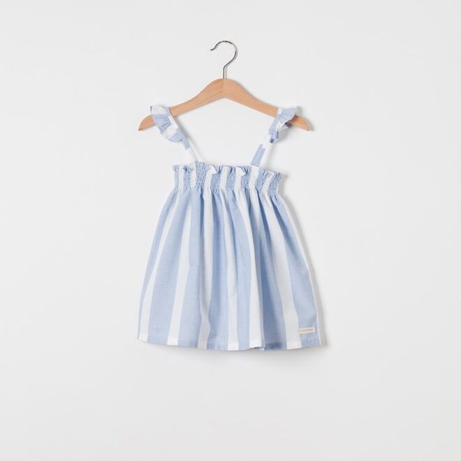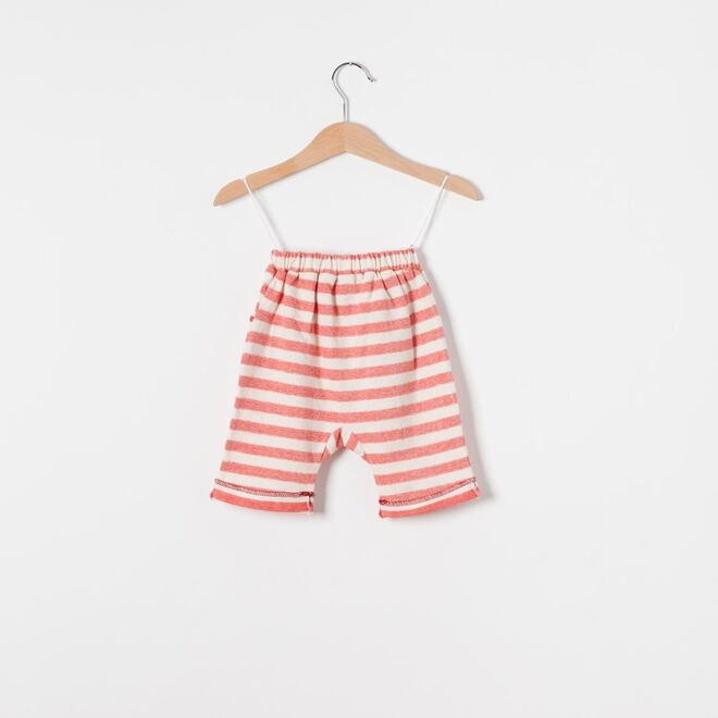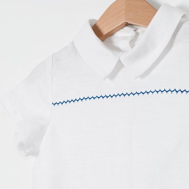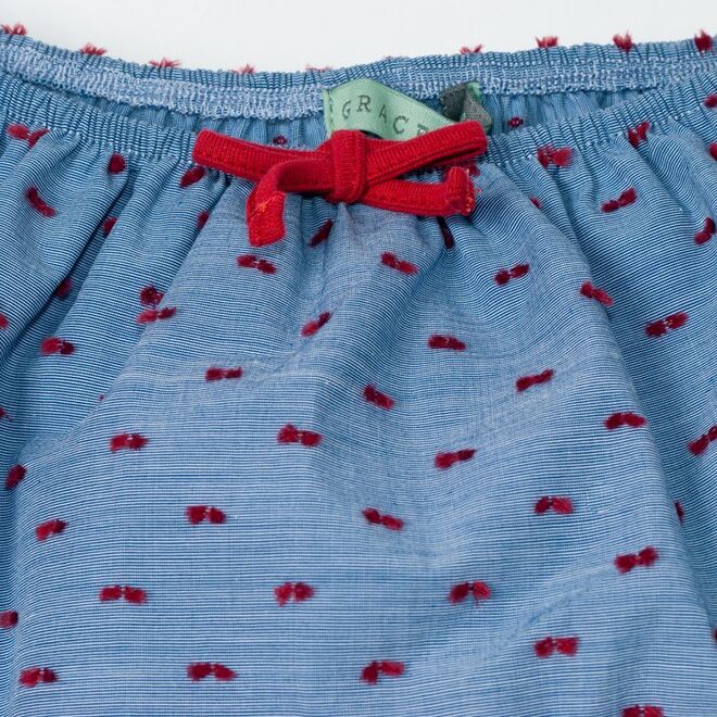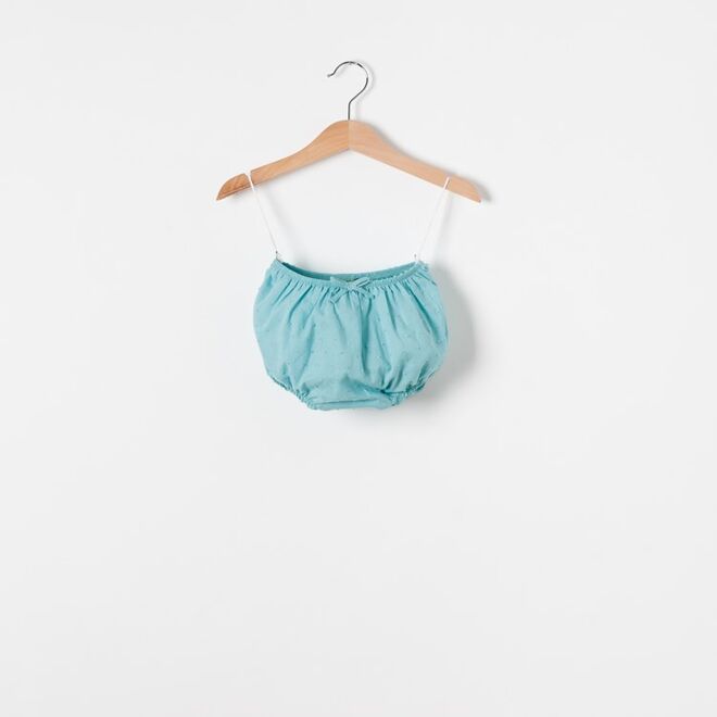 O tecido protagonista é o plumeti, uma versão de algodão bordado, que se conjuga com os padrões de bolinhas (polka dots), riscas e xadrez. As peças são simples mas não básicas: cueiros, fofos, bloomers e pequenas jardineiras, com aberturas pensadas para a muda de fralda fácil e confortáveis. Grande destaque ainda para as malhas tricotadas, ideais para vestir nos bebés pequeninos e acabados de nascer.
