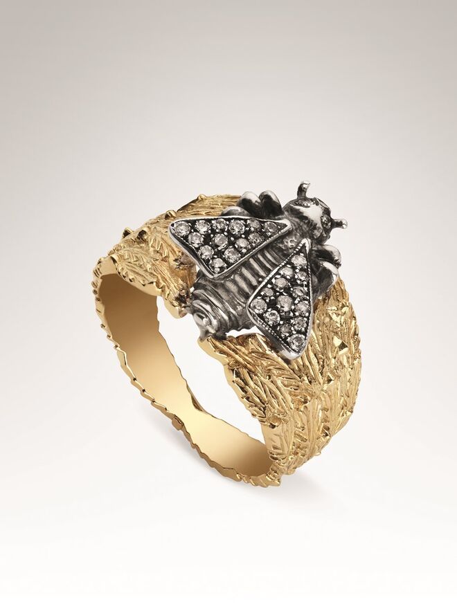 Com referências à beleza elementar e pura do mundo natural, neste jardim Gucci a vida selvagem aparece em coloridos e românticos padrões e através de ornamentos presentes na coleção.